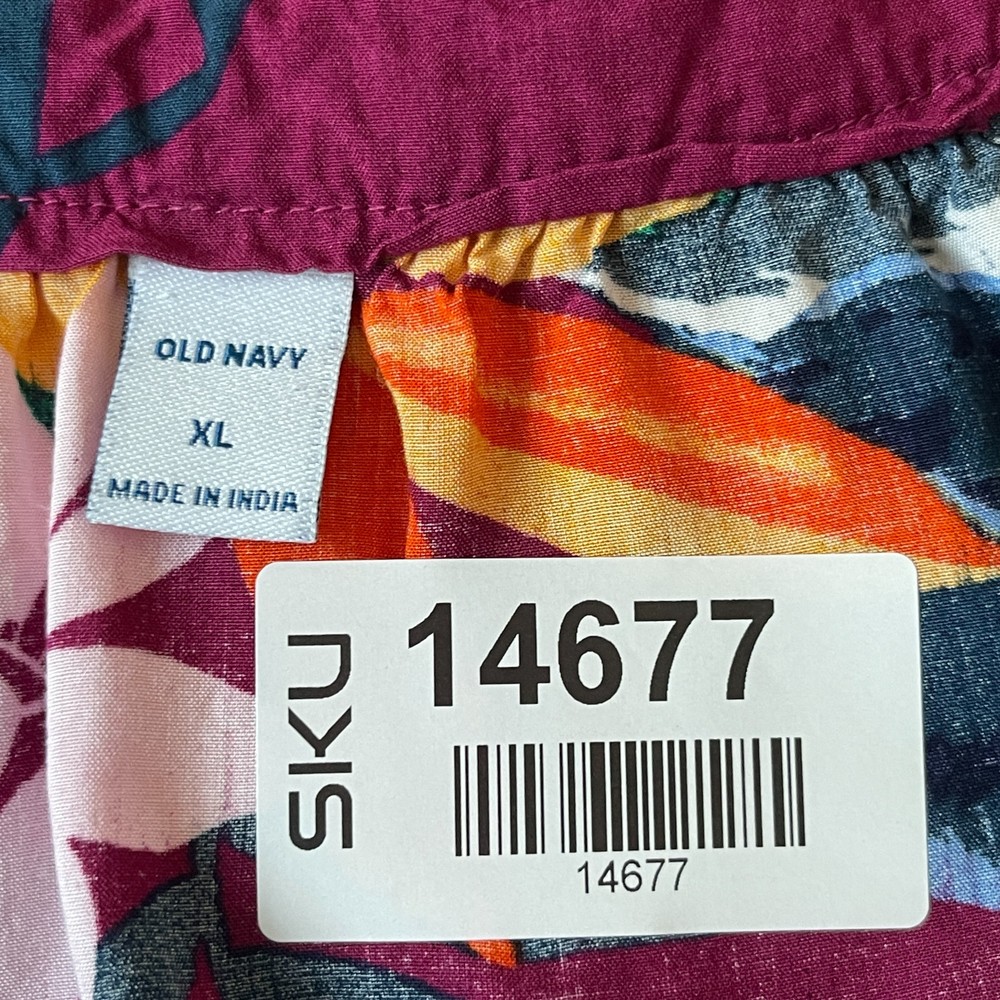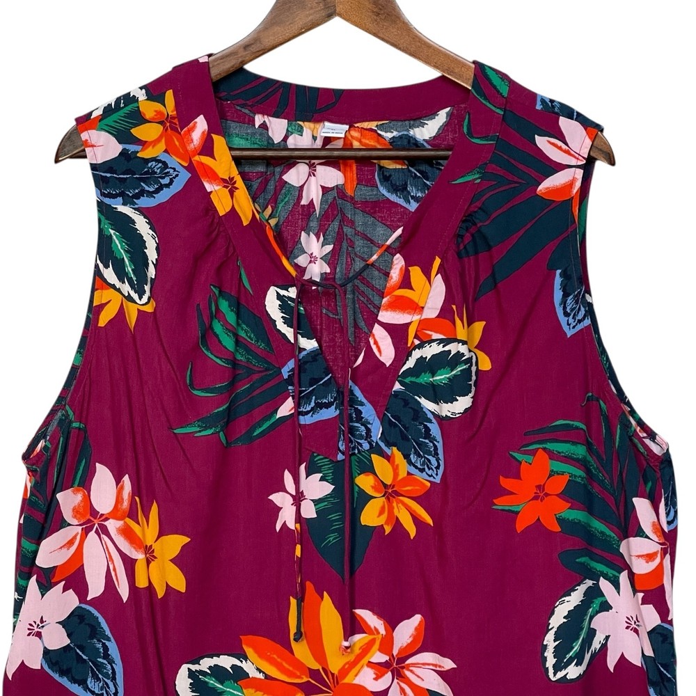 Old Navy "Raspberry Floral" Tropical Shift Dress Get ready for sunshine in this effortlessly chic and breezy shift dress from Old Navy. This dress is perfect for a vacation, a beach day, a casual weekend, or even as a stylish swim cover-up. It's crafted from 100% lightweight and drapey rayon to keep you cool and comfortable. The dress features a vibrant tropical floral print on a rich raspberry pink background. The flattering silhouette includes a split V-neck with tassel ties and a loose, comfortable A-line swing fit. Features: Brand: Old Navy Size: XL (Extra Large) Color: "Raspberry Floral" - Pink with a multicolor tropical print Style: Sleeveless Shift / Swing Dress Details: Split V-neckline with ties Loose, A-line silhouette Shirttail hem Gathers at the back yoke for added drape Material: 100% Rayon / Viscose Condition: Excellent pre-owned condition with no visible rips, stains, or flaws. Flat Lay Measurements (Approximate): Pit to Pit: 24.5" Length: 39" Care: Machine wash cold, gentle cycle. Line dry. From a smoke-free home. Fast shipping! Keywords: Old Navy, Dress, Shift Dress, Swing Dress, Tunic, Sundress, Beach, Cover-Up, Size XL, Extra Large, Sleeveless, V-Neck, Tropical, Floral, Hawaiian, Botanical, Pink, Raspberry, Magenta, Fuchsia, Rayon, Viscose, Lightweight, Vacation, Cruise, RN 54023, SKU 14677