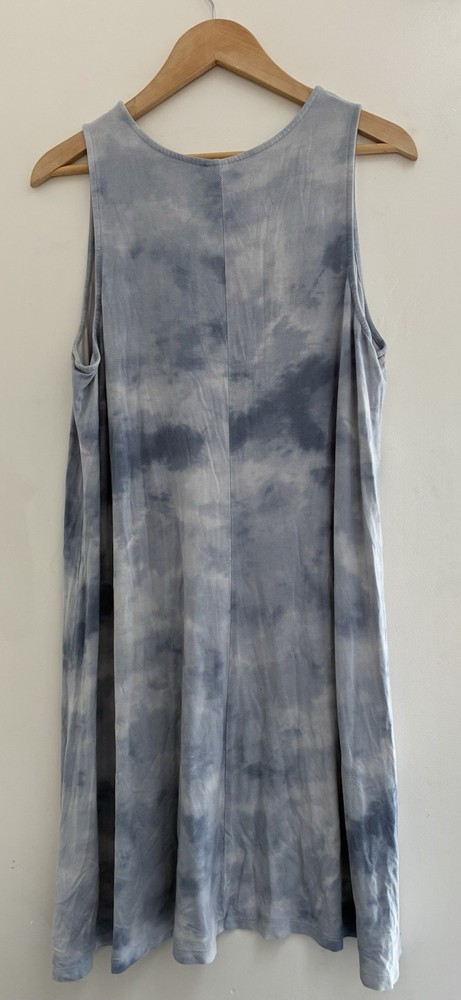 Old Navy Women's Cool Tie Dye Rayon Blend Sleeveless Knit Swing Dress Blue XL. Condition is pre-owned. Smoke free, pet free home. Shipped via USPS Ground Advantage. In very good condition. There is a small brown spot on the side of the dress. Free of rips.