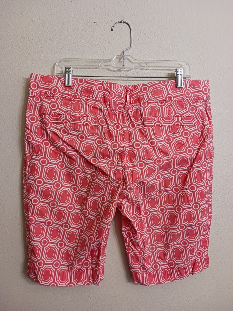 Preowned and well made, 100% Cotton. 4 pockets. Length - 21" Across waist - 18" Rise - 10" Across hips - 22" Inseam - 12" Across leg opening - 9"