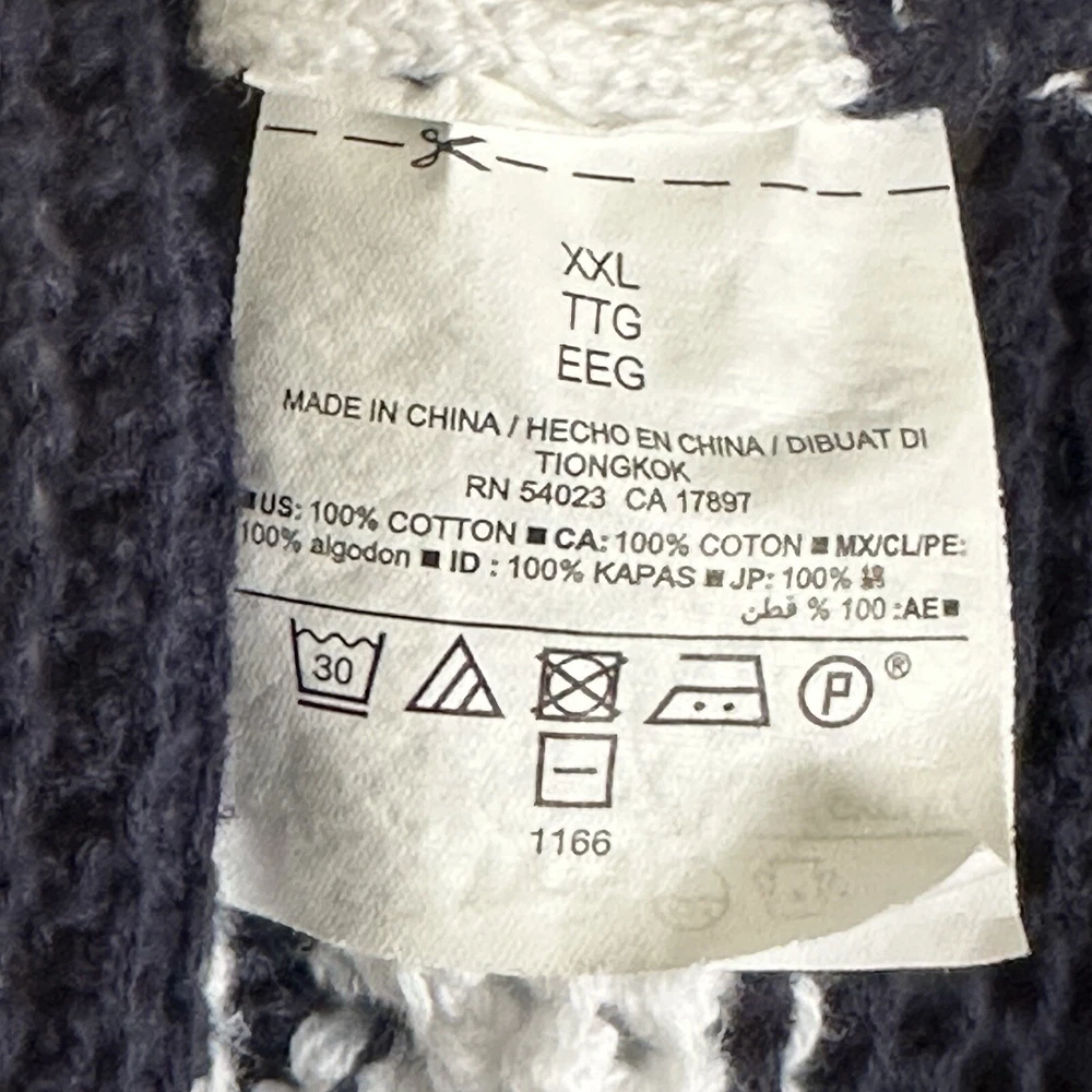 Old Navy Womens Sweater XXL Blue White Striped Cotton Open Cable Knit 3/4 Sleeve