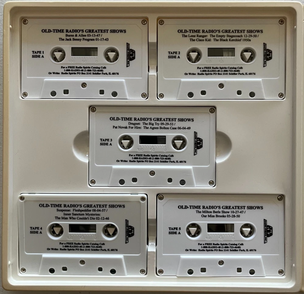 Radio Spirits has specialized in capturing the magic that was old time radio for decades. This collection perfectly exemplifies what makes their work so valuable! Return to the thrilling days of yesteryear with this amazing collection of radio programs from the 1940s and 1950s! Available with this listing is the Radio Spirits “Old Time Radio’s Greatest Shows” collection. It features episodes from 60 radio programs on 30 90-minute cassettes, amounting to a whopping 20 hours of classic, nostalgic entertainment from the golden era of radio! Any person of a certain age (ahem) will likely remember many of these shows and would appreciate the collection as a remembrance of those bygone days! We purchased this item for our parents as a Christmas gift in 1999 to accompany a reproduction period Crosley radio (we know that the originals didn’t have cassette players built in). While they enjoyed the radio, once the plastic wrap came off of this item it just sat on a bookshelf in first their home and then our mothers after our father passed. The cassettes, sadly, were never played and have been closed up in the plastic case for the last 25 years. Also included are a booklet with detailed information about each radio program as well as the 1999-2000 Radio Spirits catalog. PLEASE NOTE : Despite the fact that this item has been in a non-smoking home for its entire life, the outside of the plastic case has discolored somewhat to a very light brown, perhaps just from exposure to the air and possibly to sunlight. Inside, though, the plastic case as well as the cassettes are pristine white and look brand new. It is due to this discoloration that we are selling this item as VERY GOOD and are pricing it accordingly. Photos included with this listing are of the actual item, not stock. Please remember color can vary a bit due to lighting. Take advantage of this unique opportunity to pick up this awesome item that will make a great gift for someone special or keep it for yourself! This item will be shipped via USPS Ground Advantage. * * * From the Amazon Website * * * “This value packed collector package features 60 programs from 60 different series. Enjoy the most popular radio stars including “Burns & Allen” , “Jack Benny” , “The Lone Ranger” , “The Green Hornet” , and many, many more. An anecdotal guide is included to give you a more in-depth look at each show included in the package. This collection makes a wonderful gift.” * * * * * CONDITION: Each item offered is in pristine-to-mint condition, meaning there are no obvious defects to the item itself and there are no holes or tears to the packaging, where applicable. All items are 100% guaranteed authentic. RETURNS: In the unlikely occurrence a return is requested, returns will be accepted within 30 days of the item being received according to eBay Policy, so long as the item is unopened, in its original condition for resale, and includes ALL original packaging materials. PLEASE NOTE: The Buyer is solely responsible for all fees and shipping costs associated with the return of any items. SHIPPING: Shipping costs included in the purchase price will be via United States Postal Service, are for domestic shipping within the United States ONLY, and include tracking. A packing slip will be included. Additional services may be available for your shipment, so please contact us before making payment with any special requests in that regard. All possible care is taken in handling and packaging to ensure items arrive in the condition stated above. Each item is securely packaged to avoid any possible damage while in transit. If you have any questions or concerns, please feel free to contact us using the Secure eBay Message System. * * * * * THANKS FOR LOOKING!