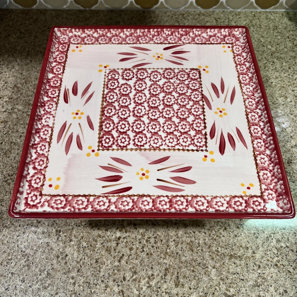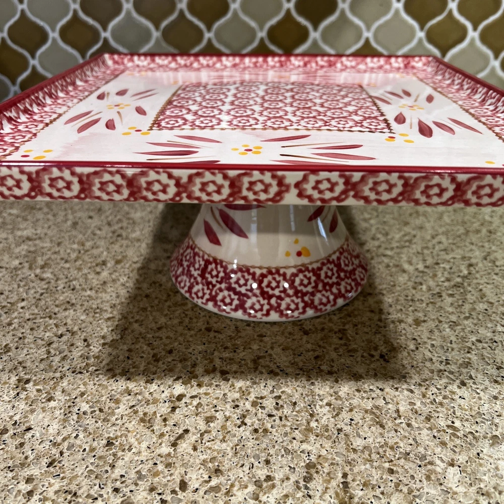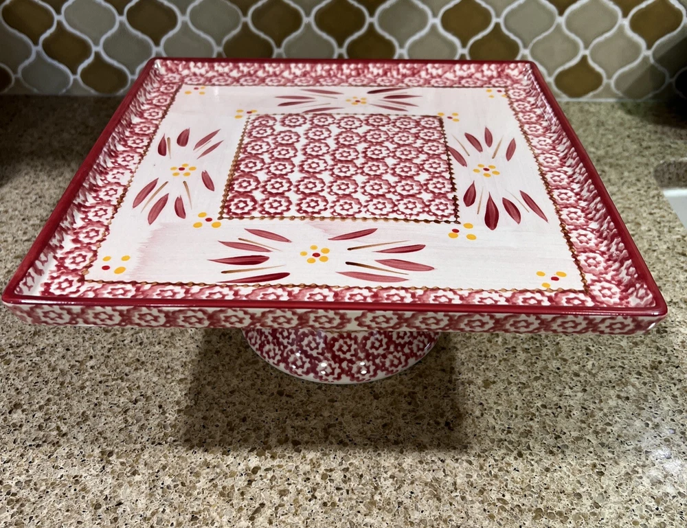 This beautiful cake stand by Temp-Tations is the perfect addition to your baking accessories. With a vibrant red color and a square shape, it adds a touch of elegance to any cake or cupcake presentation. Measuring at 11 “, it provides ample space for your sweet treats. The stand is sturdy and comes with a set that includes the stand itself. It is perfect for both personal and professional use, and is sure to impress your guests. Get this Old World Red 11" Diameter Square Pedestal Cake Stand by Temp-Tations today and elevate your cake game!