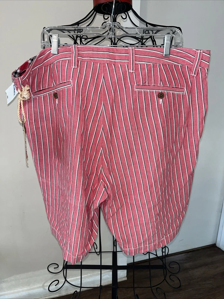 Get ready for your next beach vacation with these stylish Olde School Brand Bermuda shorts. Featuring a classic red color and a comfortable regular fit, these shorts are perfect for any man looking to relax in style. With a waist size of 34 inches and a size of 40, these shorts are a great fit for most men. Made with high-quality materials, these shorts are built to last. They come with pockets, making them perfect for storing your beach essentials. Whether you're hitting the beach or just lounging around town, these shorts are the perfect addition to any summer wardrobe.