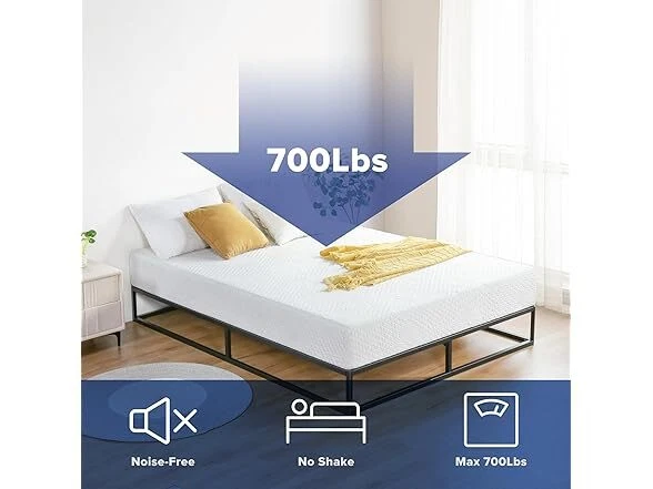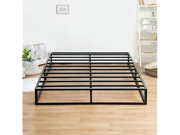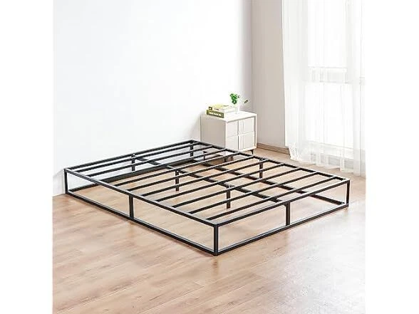 Olee Sleep 9 Inch Modern Metal Platform Bed Frame, Steel Slat Anti-Slip Support, Steel Mattress Foundation, No Box Spring Needed, Black, Queen Size Condition: New Features [ Outer Dimensions ] - 79.5 x 59.5 x 9 inches [ Inner Dimensions ] - 77.5 x 57.5 inches [ Sturdy Construction ] - Crafted with reinforced high-quality steel which ensures both safety and durability, offering a strong and dependable support structure for capacity up to 700 lbs [ Minimal Design ] - Modern and minimal anti-slip steel slat foundation with a sleek black finish that understands and fits perfectly into your bedroom style [ Noise Free ] - Precise engineering and advanced technology guarantee a quiet, noise free, sleeping environment [ Extra Storage ] - Convenience extra under bed storage space with a vertical clearance of approximately 8 inches [ No Box Spring Needed ] - Versatile design provides supportive foundation compatible with a spring, hybrid or memory foam mattress, with or without box spring [ Easy Assembly ] - Effortless self-assembly with included instruction manual, tools, and all necessary parts for a hassle-free setup experience Installation Manual (PDF) Specs In the Box: (1) Olee Sleep 9 Inch Modern Metal Platform Bed Frame, Steel Slat Anti-Slip Support, Steel Mattress Foundation, No Box Spring Needed, Black, Queen Size Specifications Item Weight: 39.8 pounds Item Dimensions: 79.5"L x 59.5"W x 9"H Size: Queen Ground to Item Distance: 9 inches Care Instructions: Wipe with Dry Cloth Special Feature: Minimal Design, Sturdy Construction, Extra Storage, Noise Free