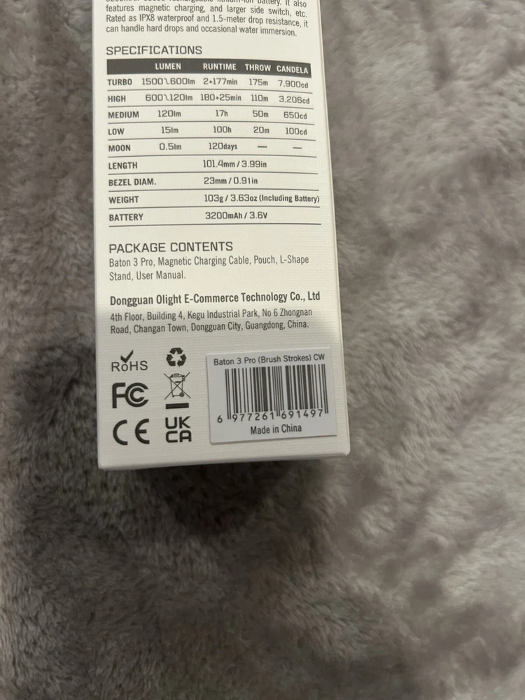 Olight Baton 3 Pro Brush Strokes Rechargeable Flashlight, 1500 Lum, Cool White. Condition is New. Shipped with USPS Ground Advantage.