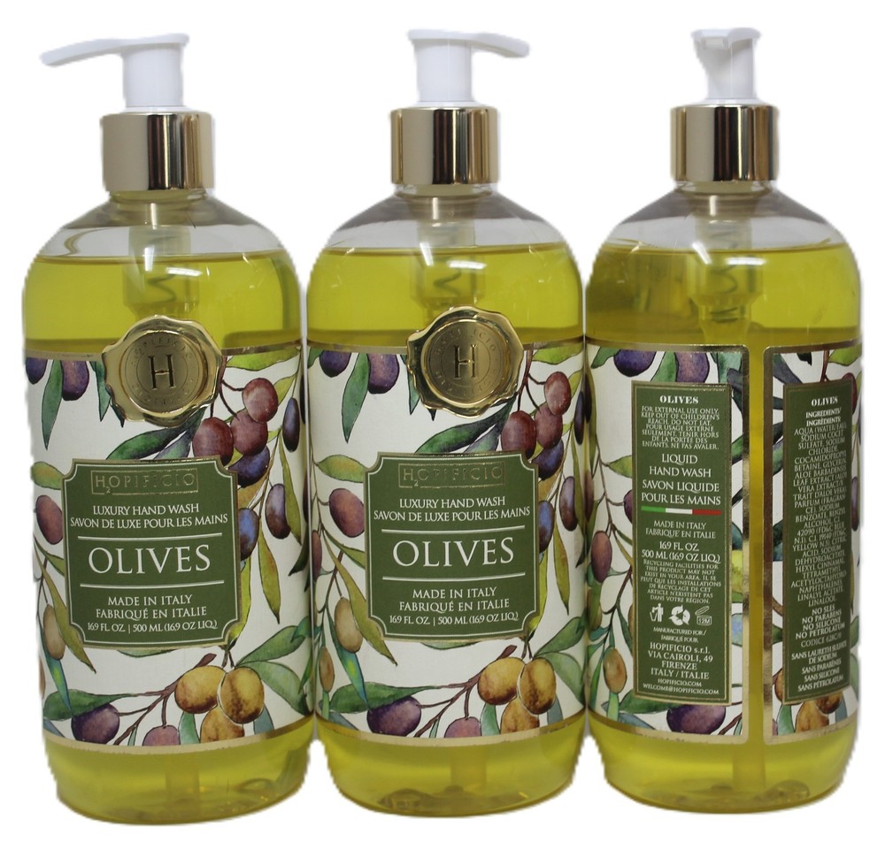 Olives Hopificio Firenze Hand Wash Soap 16.5 oz Italy Luxury Lot of 3 Brand New