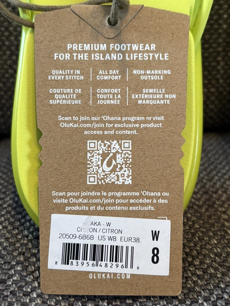 OLUKAI CITRON/CITRON 'AKA KNOTTED STRAPS BEACH/POOL FLIP FLOP SANDALS 8 NWT. Shipped with USPS Ground Advantage.