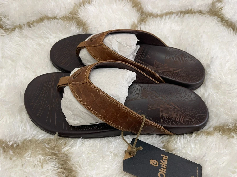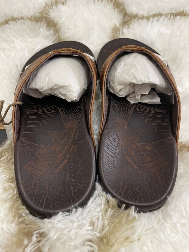 Brand New with box 100% authentic Men's size 11 Color Tan/Dark Java All sales are final, pleae make sure it's the right size before ordering Fast shipping via UPS Ground Key Features: Rich Leather Details: Embossed leather straps and a laser-etched footbed, inspired by the theme of voyaging, create a stylish and meaningful look. Custom Comfort: The compression-molded EVA midsole is designed to fit the shape of your foot, providing durable support and comfort. Secure Traction: Non-marking rubber pods provide grip and flexibility on any surface. • Inspired by Hawaiian Voyaging & Art of Celestial Navigation • Form-Fitting Custom Comfort • Buttery Soft Full-Grain Leather • Island-Inspired Laser-Etched Details • Secure Traction in any Environment