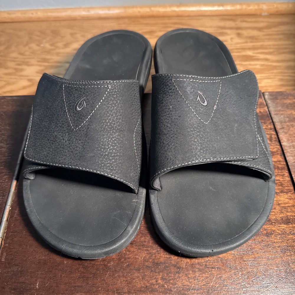 This Olukai Nalu Slide sandal in black is perfect for any man looking for comfort and style. The synthetic upper material and rubber outsole provide durability and support, while the solid pattern and slip-on style make them easy to wear. These sandals are designed for men and come in a size 13M. Whether you're heading to the beach or running errands, these Olukai Nalu slides are a great addition to any outfit. The sleek black color and minimalist design make them versatile and stylish. Plus, they're made by OluKai, a brand known for their quality and craftsmanship.