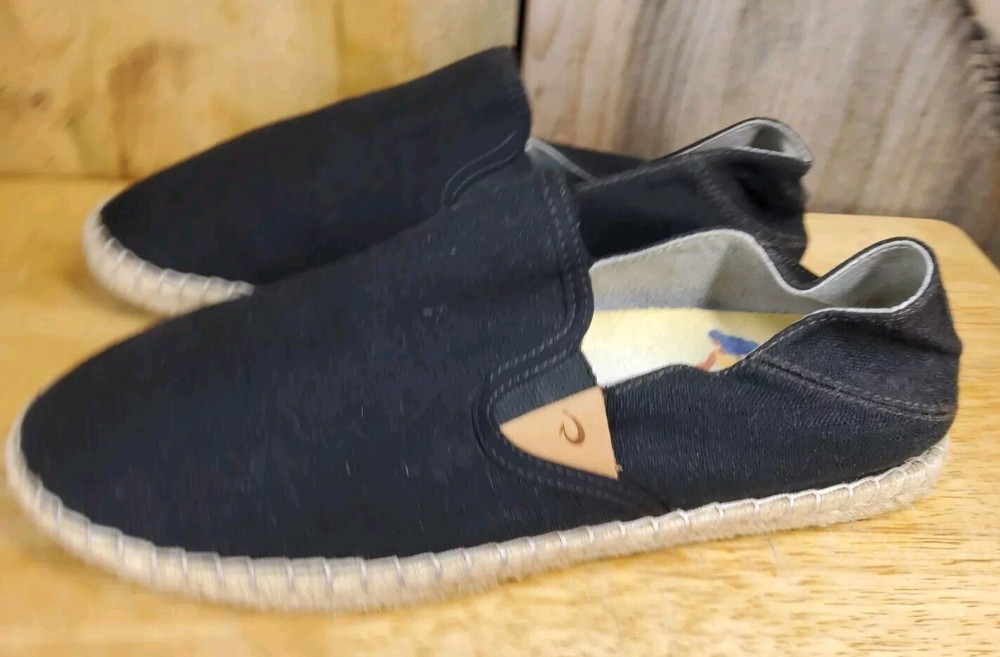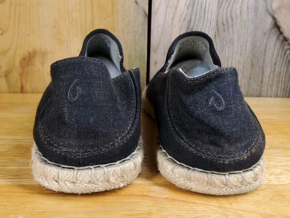 Olukai Women's Kaula Pa'a Kapa comfort slip-on espadrilles size 10 black linen. In great condition, slight signs of wear, mostly at the heel. Good tread, clean footbed. Please see photos for more details.