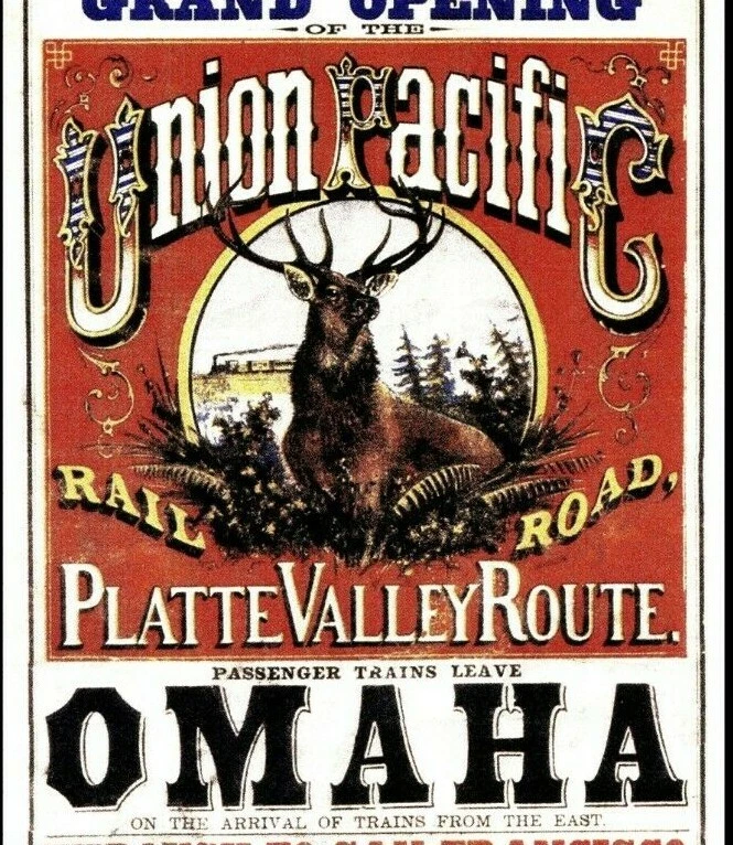 Omaha Nebraska 1869 Union Pacific Railroad Platte Valley Route Train Vintage Poster Print Retro Style Restored Art ***We offer Free US Postage or Reduced Postage for Canada and worldwide. **No Extra Post Charges For Multiples!! **These are not framed or stretched or mounted NOTE:**Delivery dates shown are only "Suggested" Order Early To Avoid Post Delay Dramas **Read Please: The print looks best with a nice mat (passe-partout or Passepartout) and frame. These prints are the exact proportion as the original and will not be stretched to fit the paper or canvas...this would cause a distorted print The image will be the exact aspect ratio as per the original poster, so there might be more white on the top and bottom, or side to side. Options available..use the drop-down menu *Watermark will not be on your image. *Cloth Canvas is an artist's canvas used in museums and art galleries *Photo Gloss Paper is a high-quality Professional Photo paper *Matte Photo Paper is a great solution if you do not want a Gloss, this paper is great with colors *Luster Photo Paper This photo paper is neither glossy nor mat. Glossy paper has a smooth texture, and luster paper is slightly textured. This option is a good choice for something in between Metallic, Photo Gloss, and Matte *Metallic Pearlescent Photo Paper is a very high-quality paper with a Pearlescent sheen, a glossy finish, and a unique metallic appearance, these prints have extra visual interest and depth. This paper uses a combination of film laminate layers that produce striking, dimensional, lasting images on an ultra-bright background. The effect is sometimes described as "chrome on paper." This is NOT a metal plaque, it is a photo paper This poster print will be shipped in a sturdy container. We will ship usually within 24 business hours of payment, except for weekends or US Holidays If there is a question, please do contact me The delivery date given on the listing page is not guaranteed by the post All is done to send you the best quality poster image. Don't forget to check out the Sales. There is a great Buy 3 Get 1 Free Offer!! Shipped Worldwide!! There are a variety of reasons why the images on your monitors don't match each other. The simplest is that each monitor is different; even monitors with the same model won't have colors that match up perfectly We are located and ship only from the USA The art is not AI generated, these are restored prints from originals