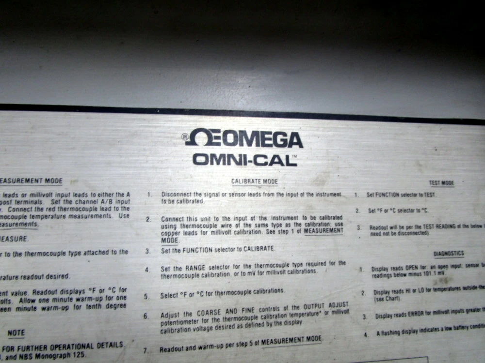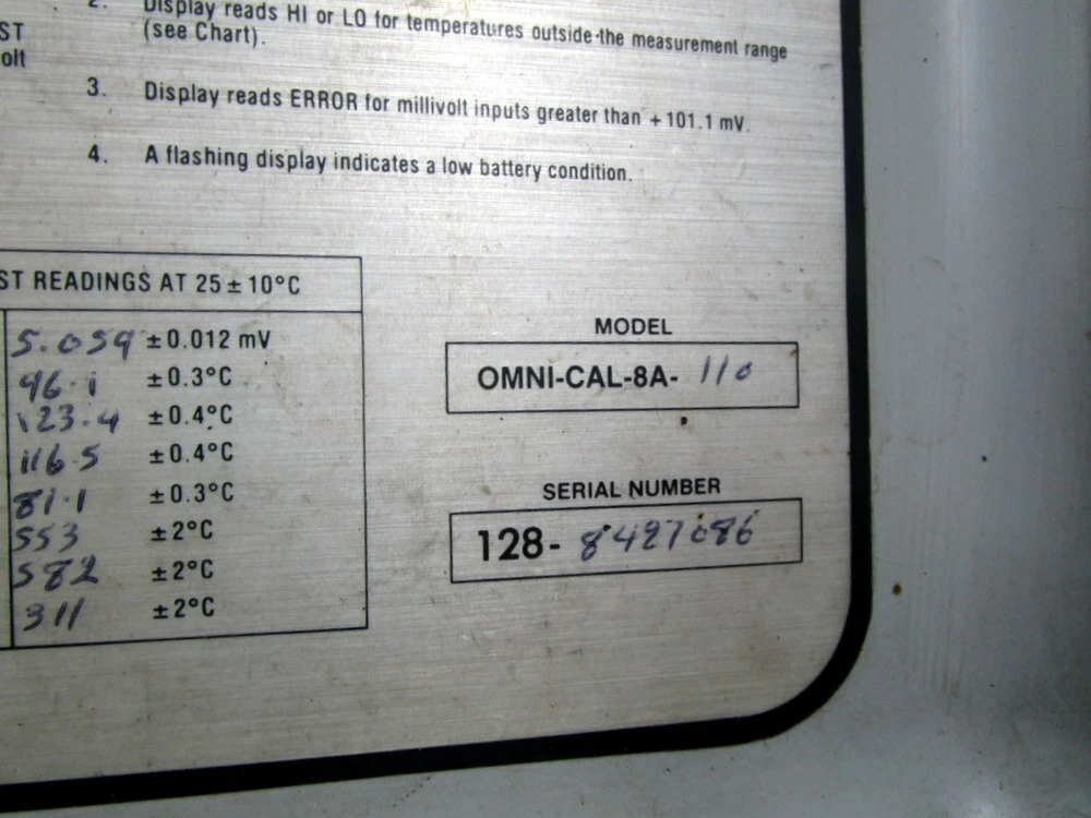 Mara Industrial ID: 155810-184751 Omega OMNI-CAL-8A-110 Portable Thermocouple Tester OMNICAL8A110 - Used PN: OMNI-CAL-8A-110 OMNICAL8A110 (2) Switch Controls (6) Dials FREE SHIPPING DISCLAIMER : In order to offer Free Shipping, as well as faster delivery options, eBay's technical requirements force us to select a carrier. We reserve the right to change carriers in order to get the best price and options (Applies to free shipping only, if you select another option we will ship with that option!). If you have trouble receiving packages from a particular carrier due to location or some other circumstance, please notify us in your order note. Free shipping does not apply to products over 130 lbs or that have other large dimensions requiring special freight handling. For questions, alternate payment or shipping methods, please contact us! Immediate Service Available: M-F 9AM to 5PM EST