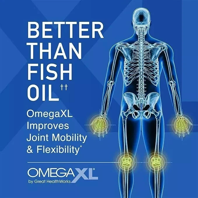 XL BENEFITS BEYOND OMEGA-3s - The ultimate joint health and mobility support supplement. OmegaXL goes beyond standard omega-3 supplements that mainly contain just EPA and DHA. It is a concentrated source of green-lipped mussel oil packed with a powerful combination of healthy fatty acids and lipid mediators. Backed by over 40 years of clinical research, this high-potency blend promotes joint, muscle, immune and respiratory health. MUSSELS FOR YOUR JOINTS - Our one-of-a-kind proprietary formula helps to relieve occasional exercise-related joint and muscle soreness by providing omega-3 fatty acids in a more absorbable free fatty acid form than standard fish oils. Don’t let minor aches hold you back from living a healthy active life. OmegaXL is a drug-free, natural dietary supplement that when taken daily, has been shown to promote joint health and improved mobility. MORE THAN A FISH OIL - OmegaXL contains the oil extract from green-lipped mussels, not fish. The green-lipped mussels are exclusively sourced from and sustainably farmed in the pristine water of New Zealand. The oil extract contains over 30 free fatty acids, including EPA and DHA. GET THE BENEFITS, WITHOUT THE FISHY AFTERTASTE - OmegaXL is provided in a convenient, small and easy-to-swallow soft gel with no fishy aftertaste or burps. This product is free of gluten, allergenic levels of shellfish protein, artificial ingredients, milk, yeast, and corn. COMMITTED TO WELLNESS - Founded in 2003 Great HealthWorks is dedicated to delivering quality health and wellness products to our consumers. Our mission is to make meaningful differences in peoples lives by offering natural, science-based solutions. TIP: During the summer or in warmer climates, keep your supplements in the refrigerator or a cool, dry place to maintain their original soft gel form.