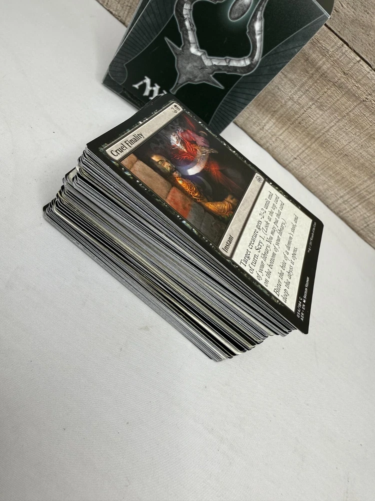 Delve into the mystical world of Magic: The Gathering with this one deck box, filled with an eclectic assortment of cards. Each box offers a surprise selection of spells, creatures, and artifacts that will add variety and strength to your gameplay. Ideal for collectors and players alike, this set promises to enhance your MTG experience with a touch of mystery and excitement. Whether you're looking to expand your existing deck or start anew, these cards will provide the perfect foundation for your next strategic battle. Each box is a unique gateway to the endless universe of Magic: The Gathering, inviting you to explore the vast possibilities of this beloved card game.
