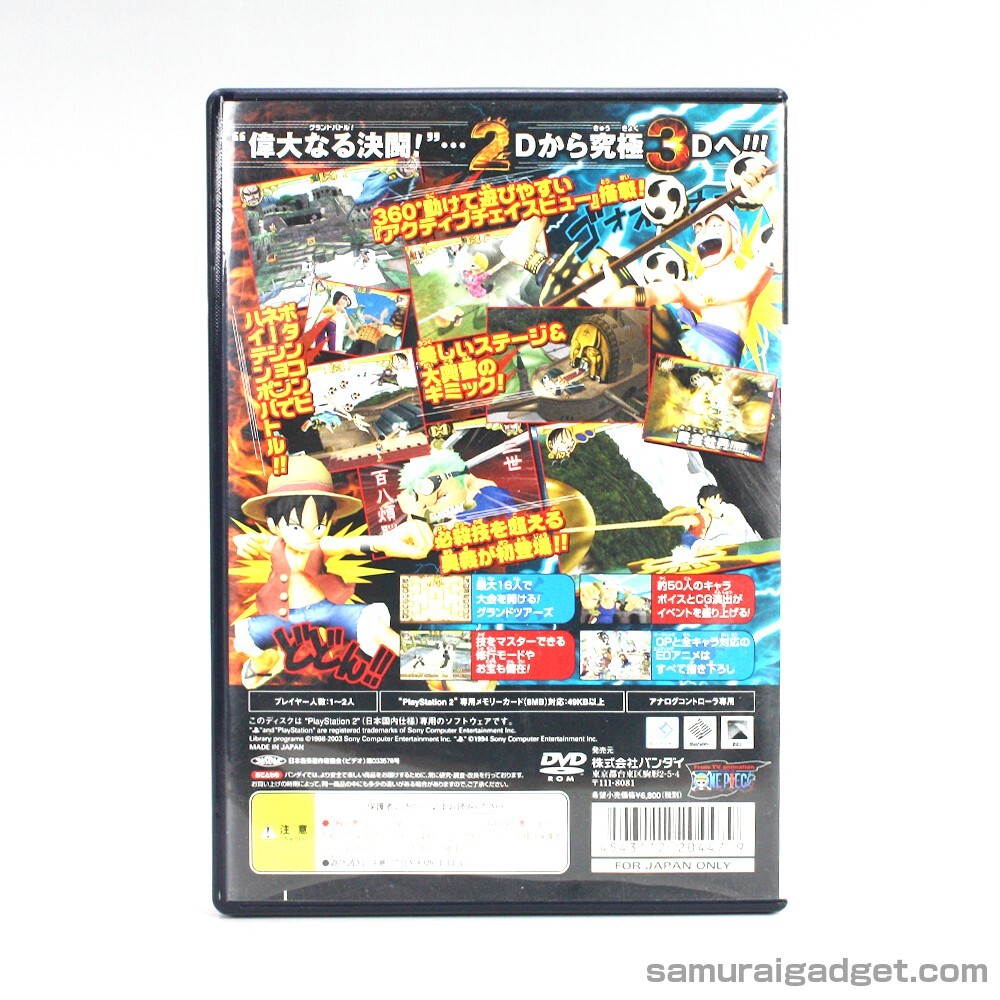 One Piece: Grand Battle! 3 One Piece: Round the Land One Piece: Grand Battle! Rush! Fighting for One Piece One Piece: Pirates Carnival - Japanese Version - ※Region Code:NTSC-J (Japan) Description ■Set Contents(5Games) (1)One Piece: Grand Battle! 3 (2)One Piece: Round the Land (3)One Piece: Grand Battle! Rush! (4)Fighting for One Piece (5)One Piece: Pirates Carnival ■Product Features These are PlayStation 2 games based on the manga and anime "One Piece." ■Product status:Very Good ■Product content (1)Original Package (2)Manual (3)Game Disc Payment Buyers accept a variety of payment methods including credit and debit cards, Apple Pay, Google Pay and PayPal. Shipping Shipping is Economy and Expedited and Standard. ■Economy Shipping:Free Shipping ■Expedited and Standard Shipping:FedEx or EMS and Yamato Japan(There is an extra charge.) ※Depending on the shipping area, only Economy Shipping is available. Notice ■The language of the game is Japanese. ■Platform:PlayStation 2 ■PlayStation 2 is not included. ■The region code for this game is Japan. International Buyers - Please Note: Import duties, taxes, and charges are not included in the item price or shipping cost. These charges are the buyer's responsibility. Please check with your country's customs office to determine what these additional costs will be prior to bidding or buying. If the cancellation is due to the buyer,we will charge a PayPal fee. If there is a remote charge for your address,we will charge you for additional shipping. Thank you for your understanding.