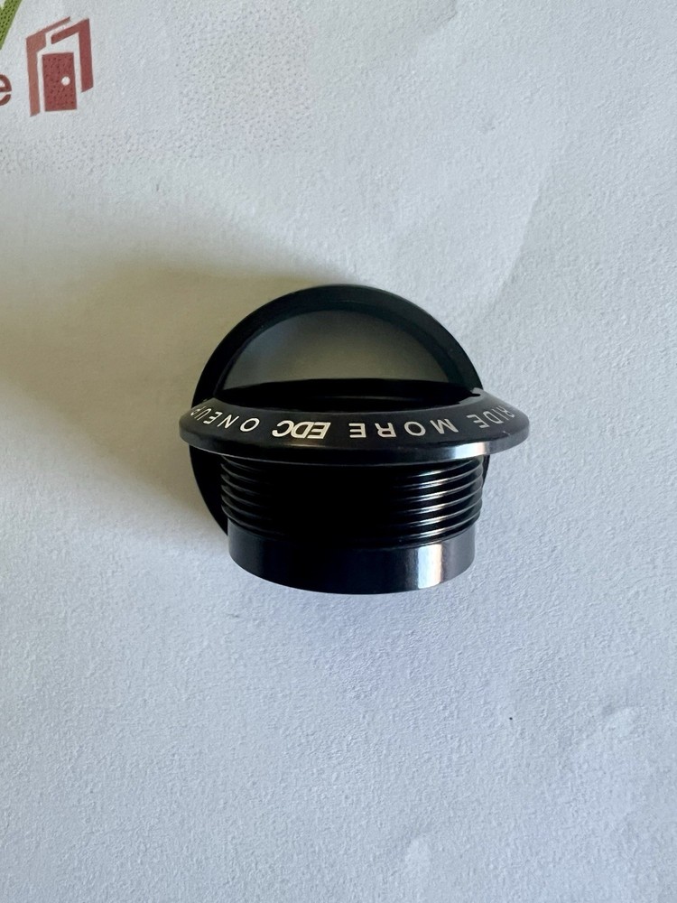 OneUp Components EDC Threaded Top Cap – Black (SKU: 1C0414BLK). Upgrade your mountain bike with the OneUp Components EDC Threaded Top Cap in Black. This innovative top cap allows for the integration of the EDC Tool into your steerer tube, providing quick access to essential tools without compromising on weight or aesthetics. Crafted from durable aluminum and fiberglass, it ensures longevity and performance on the trails.  Note: Installation requires threading your steerer tube using the EDC Tap Kit (not included). This top cap is designed for mountain bikers seeking a lightweight and efficient solution for integrating tool storage into their bike’s steerer tube. Brand: OneUp Components • Model: EDC Threaded Top Cap • Color: Black • UPC: 0023362821946 • SKU: 1C0414BLK • Material: Aluminum and Fiberglass • Weight: Approximately 0.06 lbs (27g) • Compatibility: Fits all 1-1/8” aluminum steerer tubes • Installation Requirement: Requires threading of the steerer tube using the EDC Tap Kit • EDC Top Cap • EDC Steerer Plug with Drain Hole • Headset Spacers: 2x 1mm, 3mm, & 5mm
