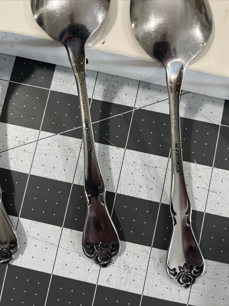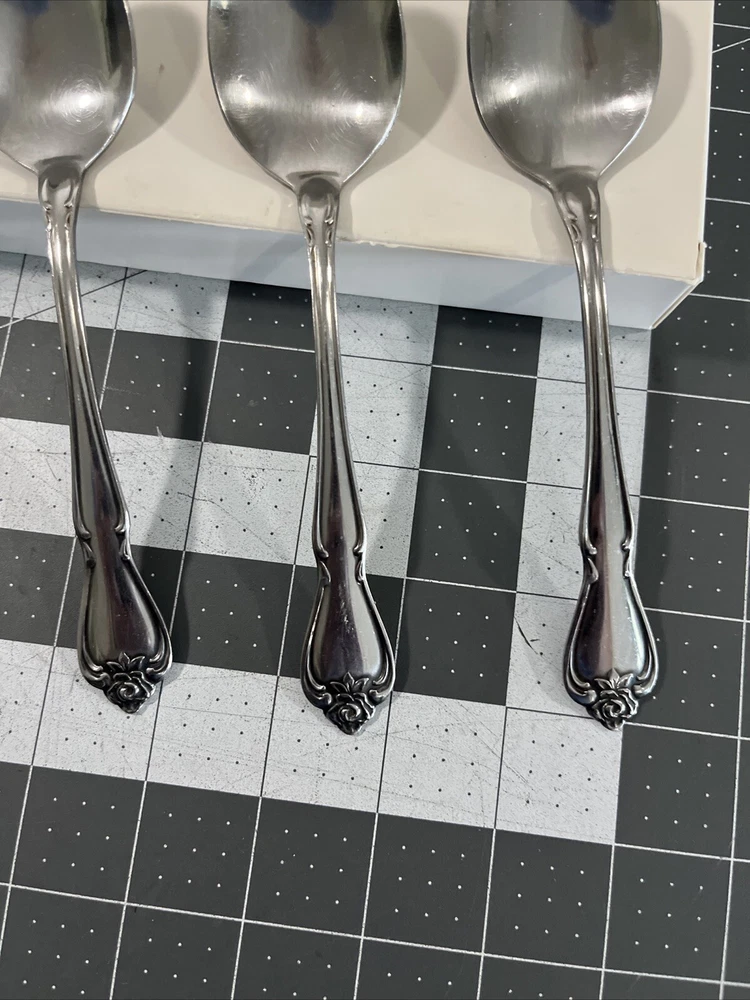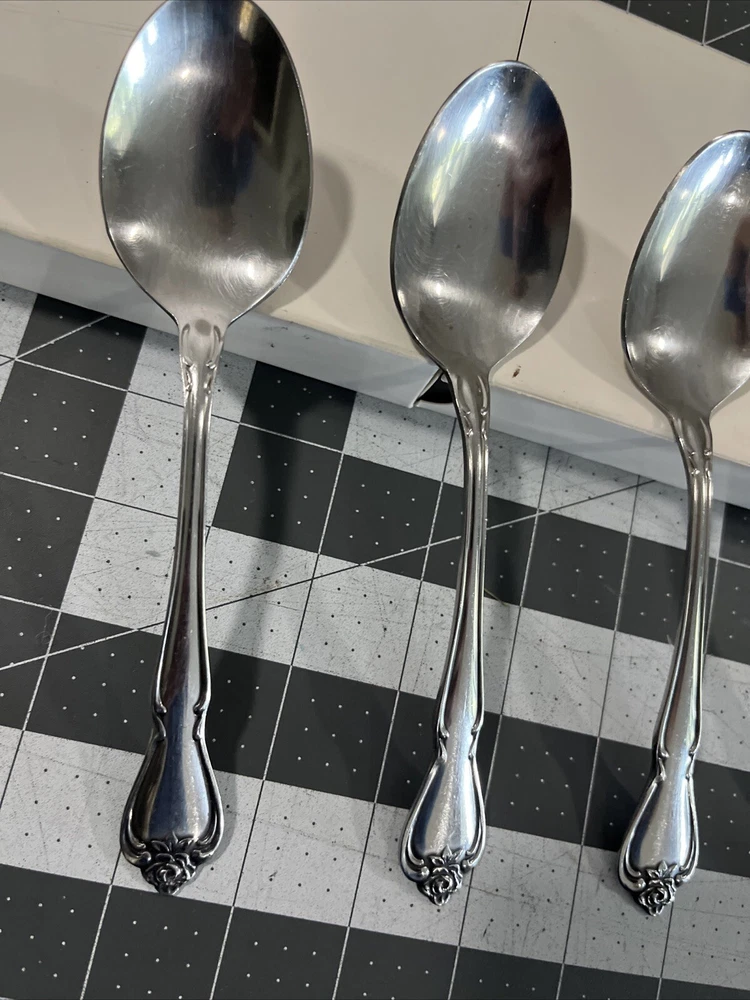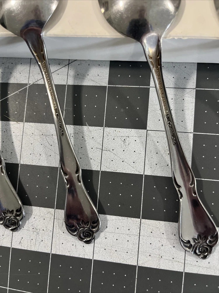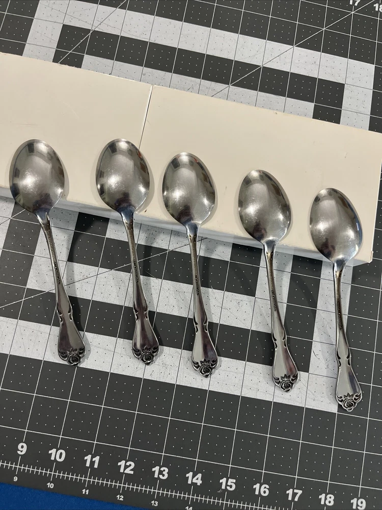 Oneida ARBOR ROSE (5) Oval Spoons TRUE ROSE 1881 Rogers Ltd Stainless Flatware