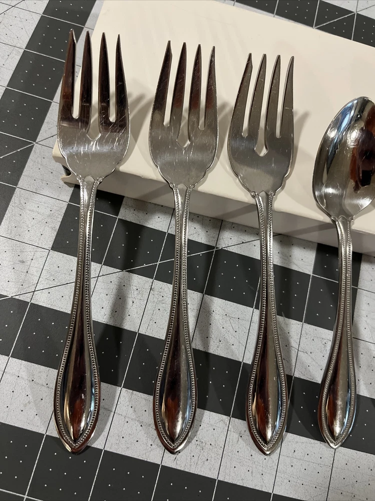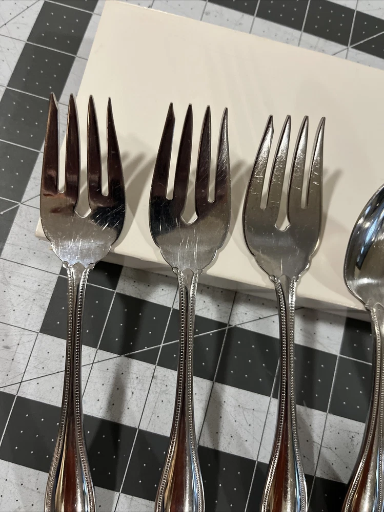 4 set,Oneida Golden Gold Aquarius Salad Forks USA Stainless Flatware Lot VTG