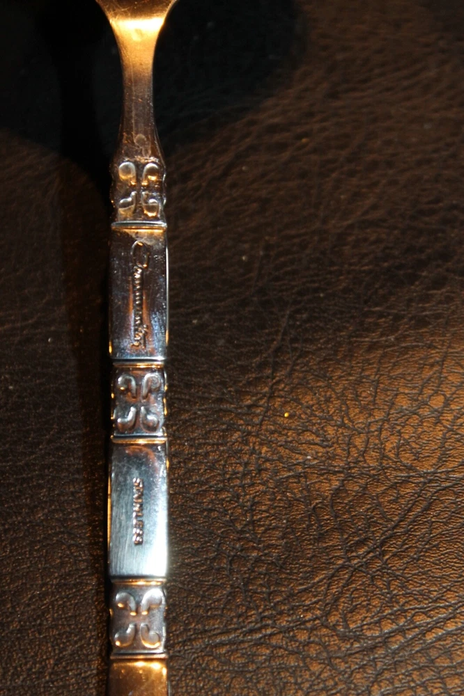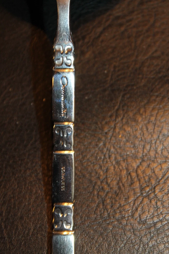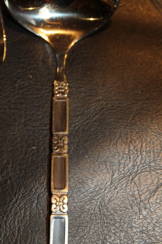 This listing is for a great Oneida Community -- Madrid pattern with the black inset trim. This is for 6 soup spoons, one ladle and a meat serving fork. Excellent gently used condition. Smoke free home. Shipping: Calculate per the calculator below. Outside U.S. contact for shipping rates. New items added daily so make sure to add us to your favorites.