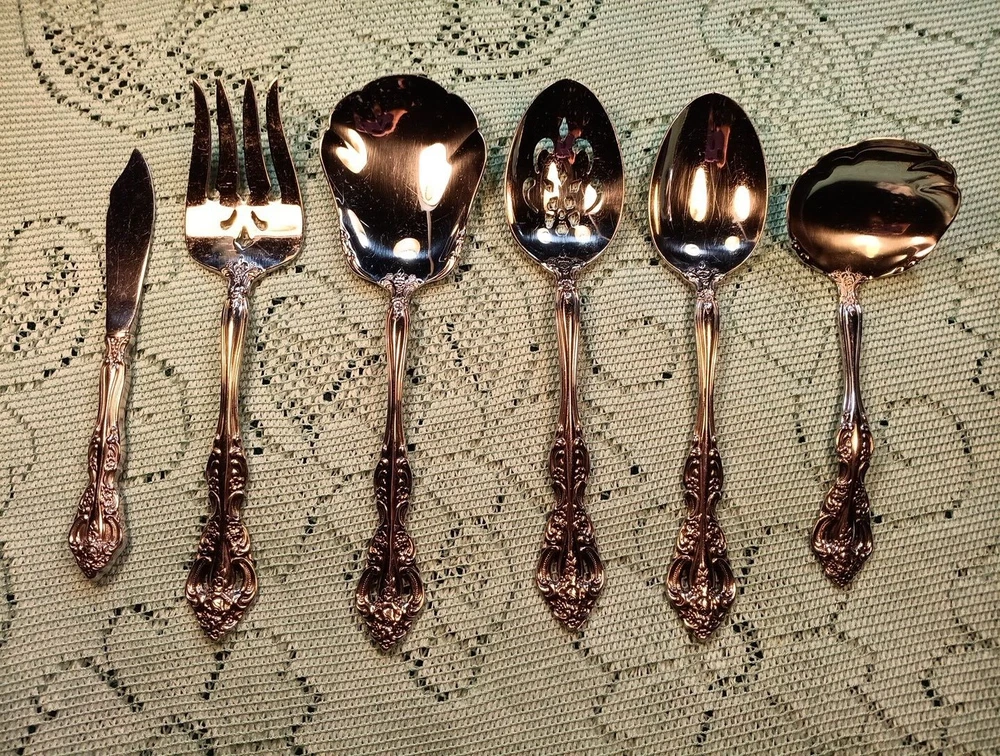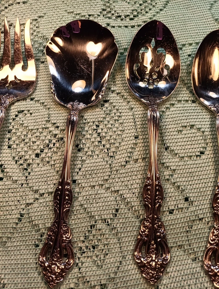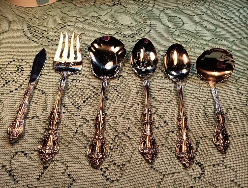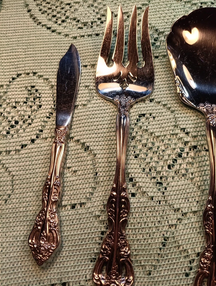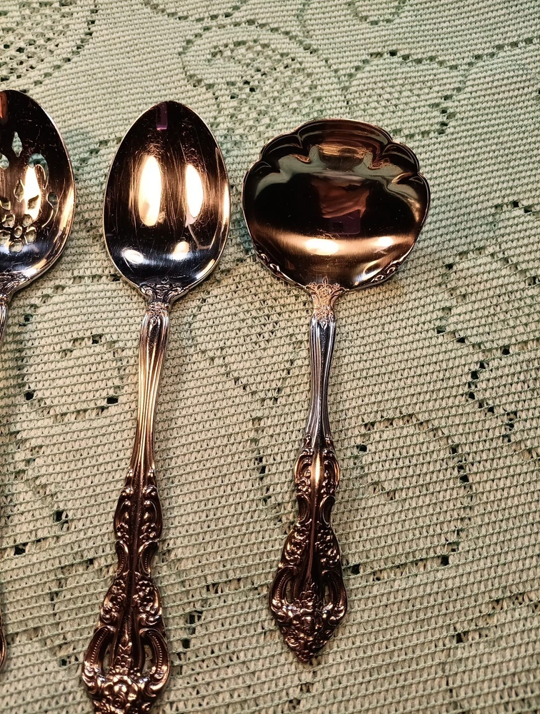 Material:Stainless SteelCharacter:naMPN:Does Not ApplyHandle Pattern:FloralBrand:ONEIDAFinish:GlossyDepartment:AdultsType:Hostess SetModel:MichelangeloUPC:Does Not ApplyHandle Material:Stainless SteelCountry/Region of Manufacture:United StatesSeller Notes:“A few minor scratches”Set Includes:Ladle, Serving Set, Serving SpoonColor:Silvergtin13:Does Not ApplyOccasion:All OccasionStyle:Traditional