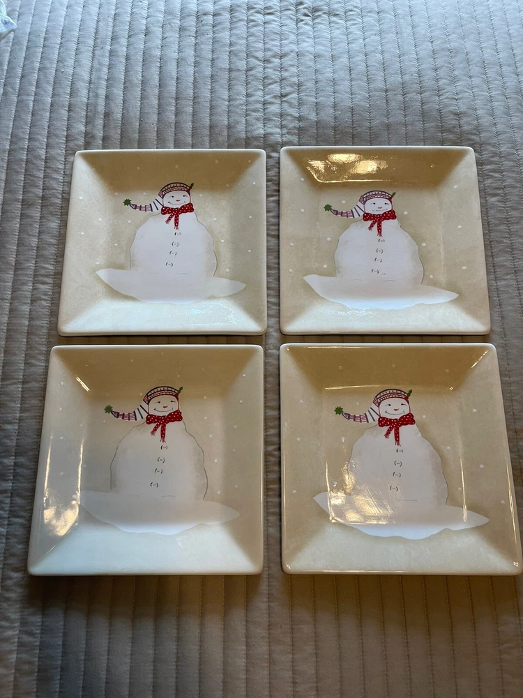 These are used, but in very nice condition . One of the plates does have a good bit of cracking in the paint . it doesn’t look quite as bad in person and the other three are quite nice . Please check out my other listings for additional Christmas items, including another set of four plates