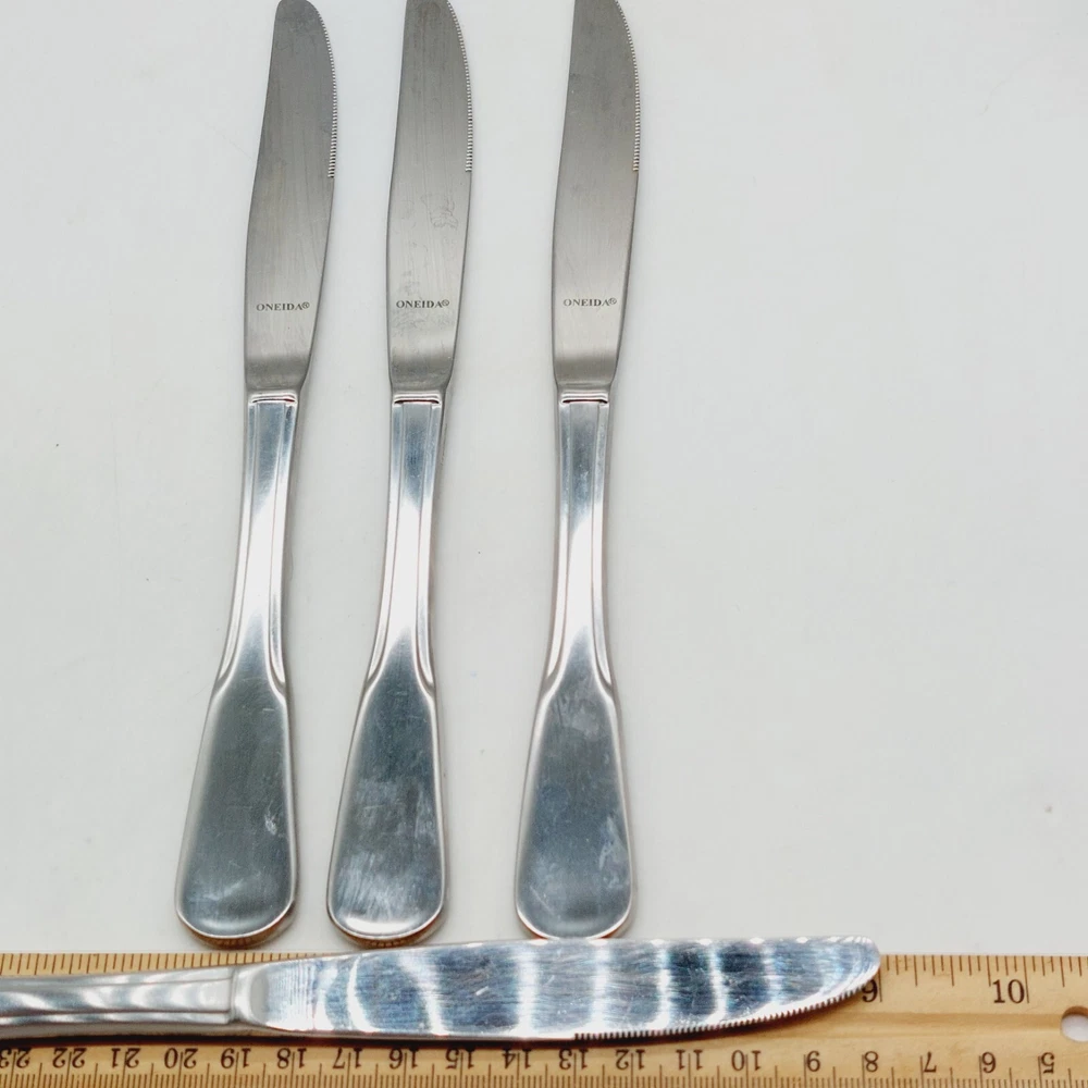 MPN:Does Not ApplyHandle Pattern:SolidMaterial:Stainless SteelDepartment:Adultsgtin13:Does Not ApplySet Includes:KnifeStyle:ColonialHandle Material:Stainless SteelCountry/Region of Manufacture:United StatesItem Length:9 inBrand:ONEIDAUPC:Does Not ApplyFinish:SatinColor:SilverModel:Yankee ClipperType:Dinner Knife