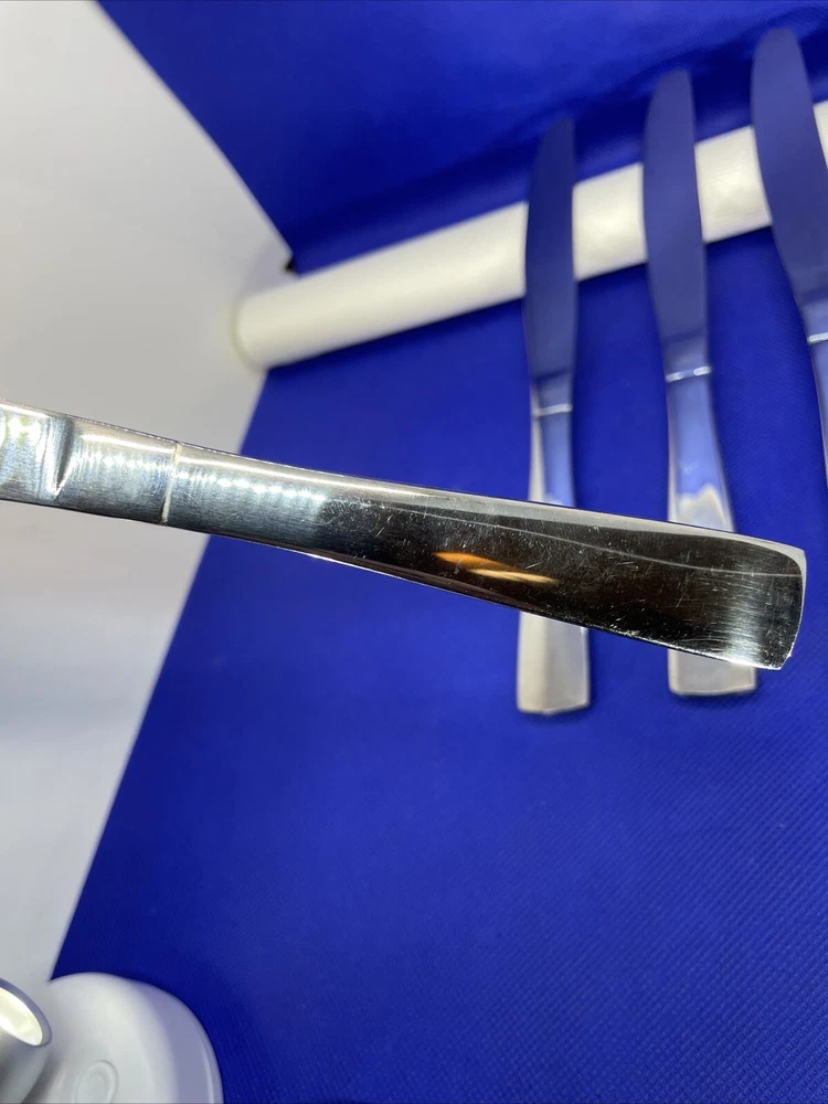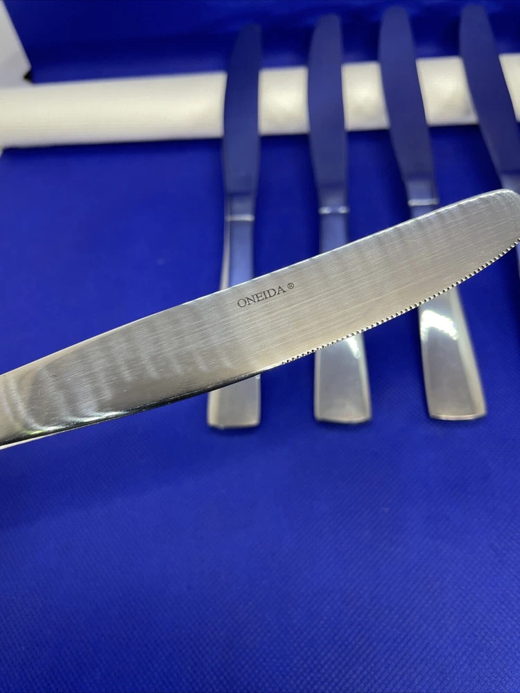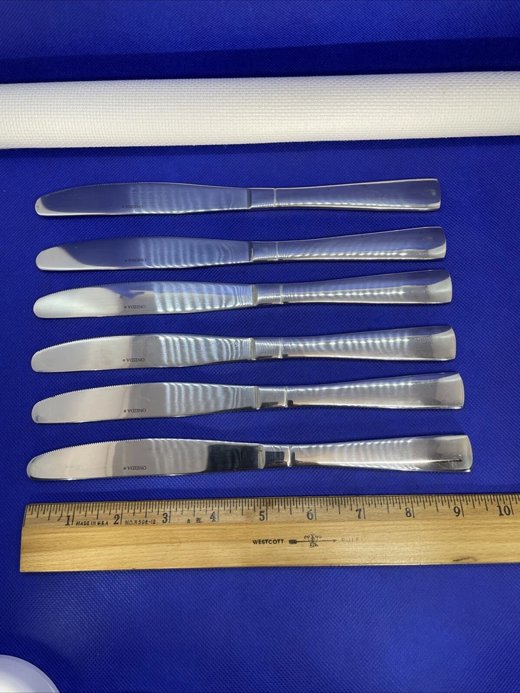 Elevate your dining experience with this set of six Oneida Zinc Stainless Glossy dinner knives. Crafted with durable stainless steel and finished with a sleek glossy coat, these knives are perfect for any occasion. The solid stainless steel handles provide a comfortable grip, while the 9.25 inch length ensures a generous serving. This set includes six dinner knives, each with a beautiful silver color and zinc pattern. They are machine washable up to 140°F, making them easy to clean and reuse. The traditional style and reusable features of this set make it a great addition to any kitchen or dining room. Knives in excellent condition. No damage, minor use marks. See our condition standards on this description. See pics. Thank you for visiting! Excited to offer for sale quality fine flatware. We are passionate about discriminating tastes. Our background has been wonderful memorable family times including special events and occasions. We marvel at the artistry, skill in craftsmanship, gorgeous designs, and iconic brands of flatware. We think of them as settings worthy to own or even pass on for generations. Enjoy your purchase! We are working hard to provide vivid professional photos, describe items as we would want to know if we were the buyer, and work to offer only what passes our inspection. For instance, many of our offerings are pre-owned so we check the flatware for defects such as spoon edge dents, bent fork tines, or bent knife tips too and work to eliminate those items as our first inspection step. Feel free to ask questions and see all photos to supplement information provided. Our condition standards are as follows: Very Good - Items including antique or vintage that have age or use marks or minor imperfections as noted in pics or our description. Excellent - No defects. An excellent cared for piece and possibly faint wear or minor wear if any including antique/vintage as noted in pics or description. Pristine Mint - No defects as noted in pics or description. A superior cared for piece including vintage/antique, rarely used, unused, or new. We list top quality items in the best condition. We absolutely care about our customer satisfaction with every purchase. Positive feedback is appreciated and thank you for your time in doing this. Take Note: *We take pride in packing and shipping to quality pack your items to arrive in excellent shape. We select USPS Ground Advantage shipping to help our buyers save on shipping costs. This expanded service will arrive well within eBay shipping window. Please double check before ordering that your “ship to” address is the way you want it! *All our fine flatware items are washed and cleaned before listing so what you see in the pics is the representation at its best *We are committed to an awesome customer experience. Thank you again for your positive feedback and know we appreciate your decision to buy from us.