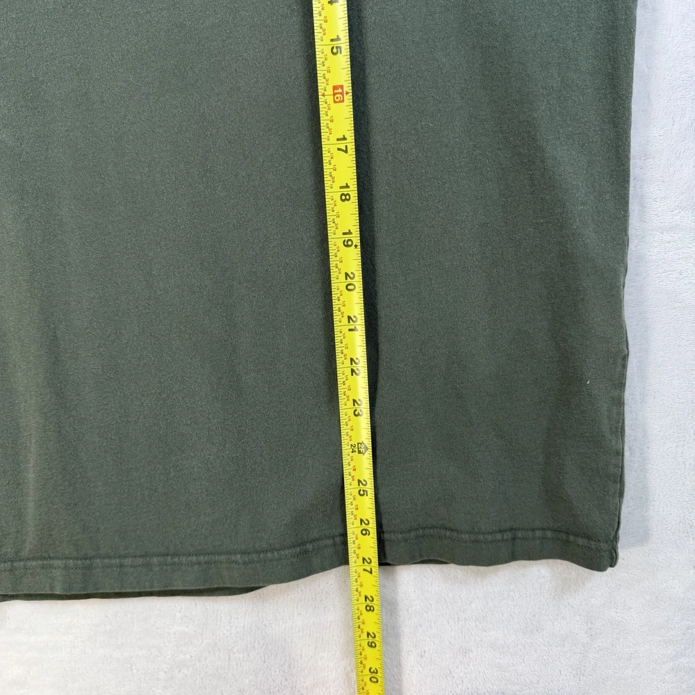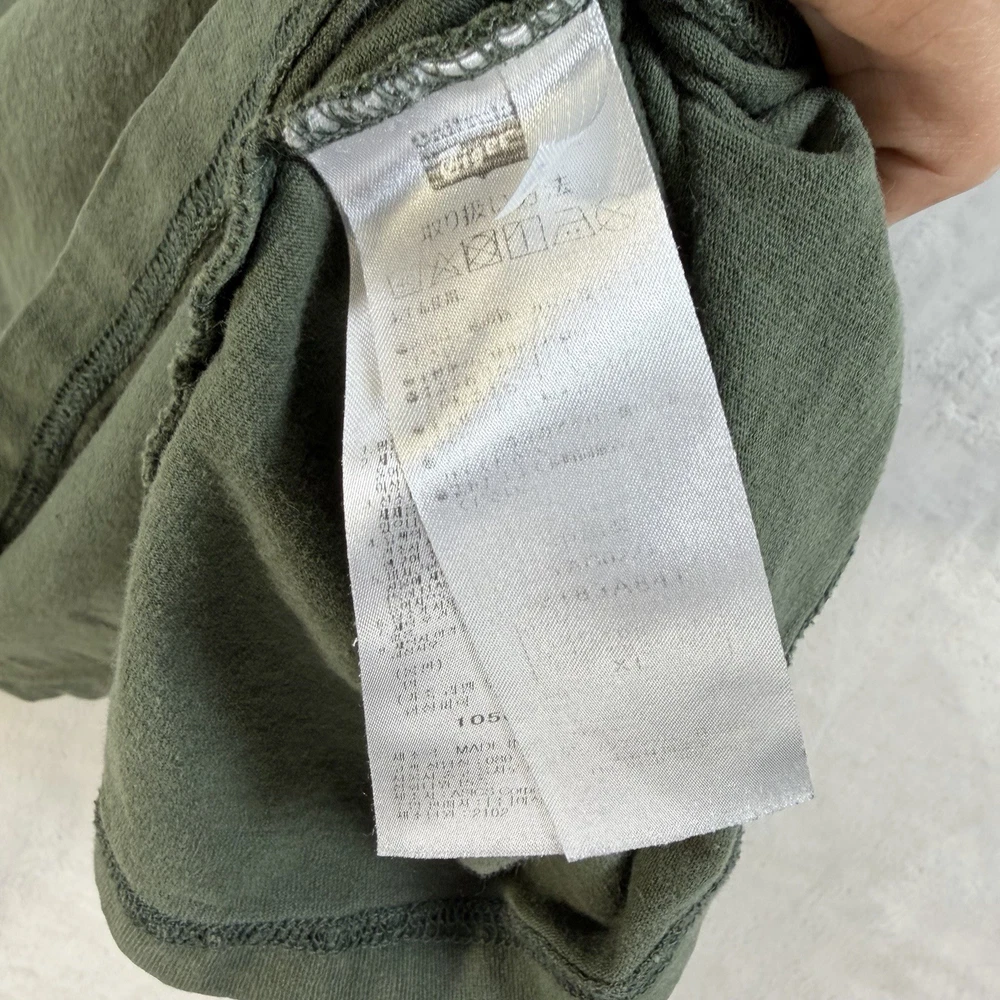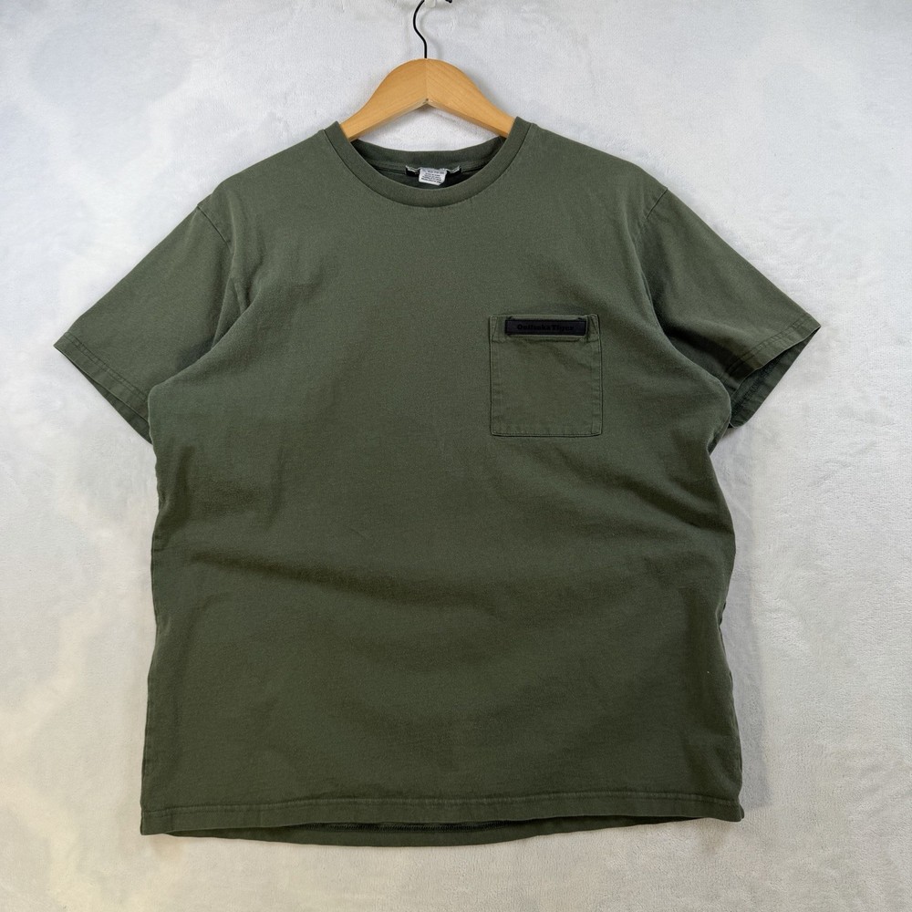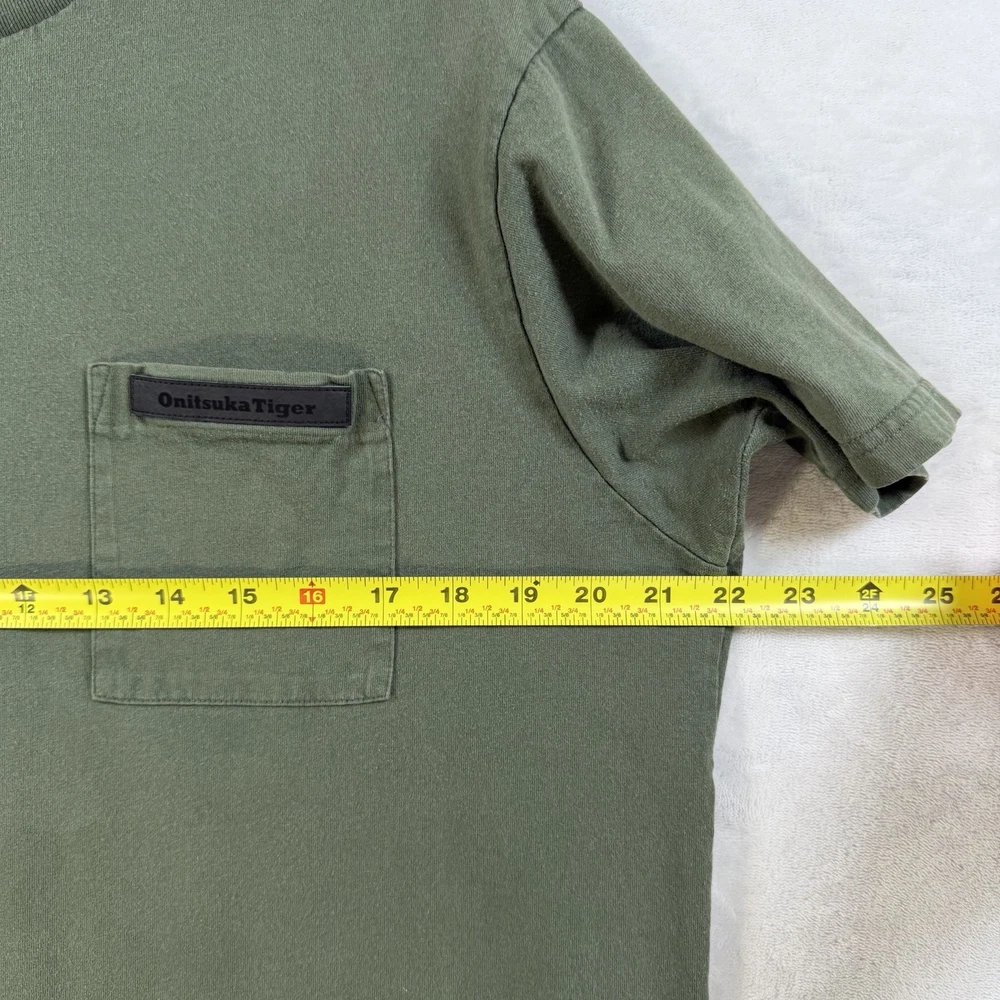 The Onitsuka Tiger Relaxed Fit Cotton Graphic Olive Green Men’s Size XL T-Shirt is a stylish and comfortable shirt perfect for spring and summer. Made from 100% cotton, this short sleeve tee features a crew neckline and a regular fit. The graphic print design with the Onitsuka Tiger logo adds a touch of accent to the overall look. This 2020-2029 manufactured shirt is a great addition to any man's wardrobe, offering both style and quality.