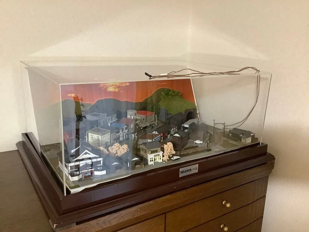 Only the finished diorama that makes model trains from the Showa era comes with an acrylic case