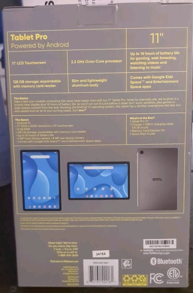 π₯ Onn 11" Tablet Pro 128GB (2023 Model) Grey Android 13 5MP Brand New