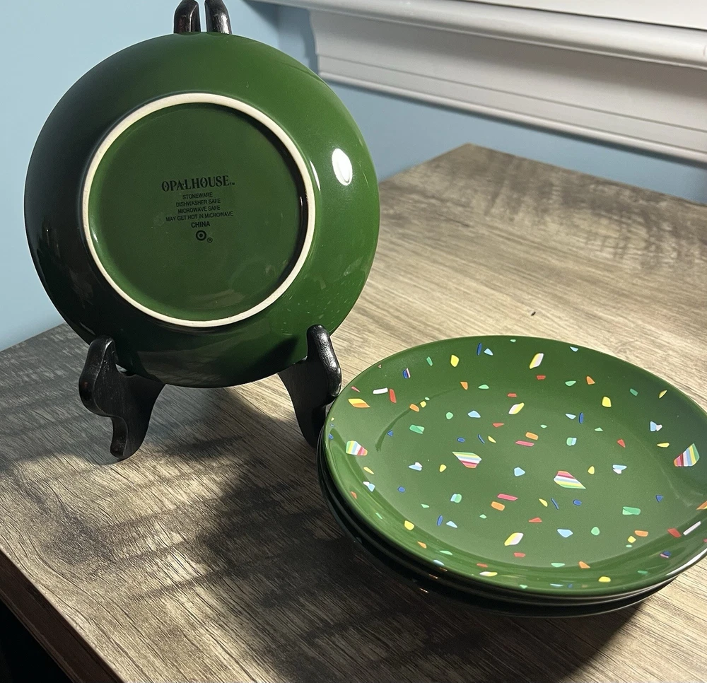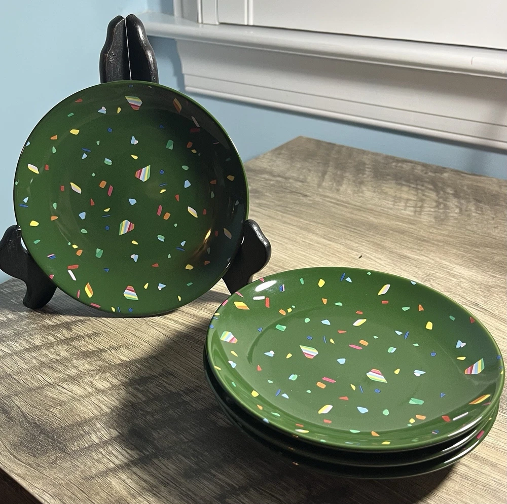 Opalhouse Jungalow 4 Pc Stoneware Appetizer Plates Confetti colorful 6” Green