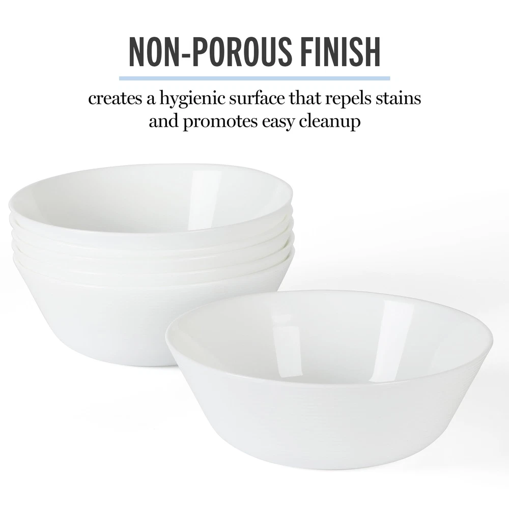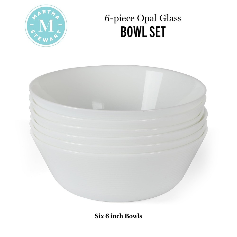 WHAT'S IN THE BOX: Six 6-inch bowls OPAL GLASS DINNERWARE :Known for its long-lasting strength and durability, opal glass resists breakage, chipping, and cracking from everyday dining, cleaning, and heating. High thermal shock resistance allows each bowl to withstand sudden changes in temperature when placed in the freezer or the microwave OPULENT TABLETOP PIECES: Classic whiteware set an opulent table setting for everyday meals and special occasions. Any dining or entertaining space receives a touch of casual elegance and serene sophistication from this set. Coordinate this opalware set with other dinnerware collections from to show off your own hosting style - whether it's traditional, seasonal, or a little bit more wild and colorful SERVICE FOR SIX: Completes a comfortable service for six when you have guests over to serve up delicious meals with beautiful presentations. Smooth, high-fired finish offers easy cleanup from its non-porous surface to repel stains, keeping the surface hygienic THE GIFT OF ENTERTAINING: A thoughtful wedding registry or housewarming gift for couples who love to host and entertain