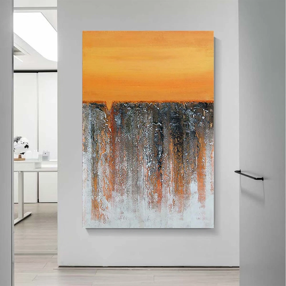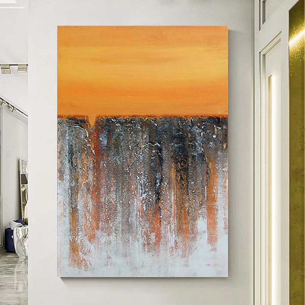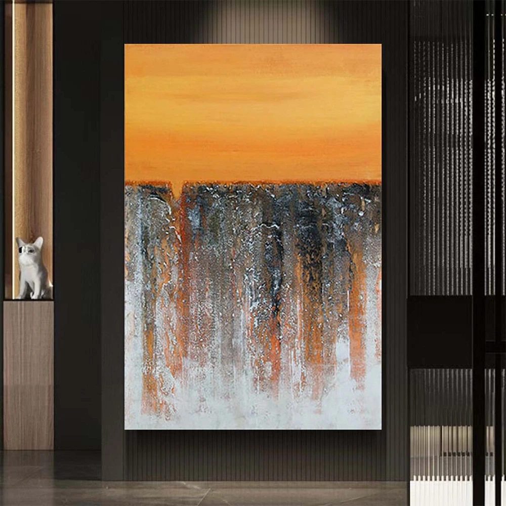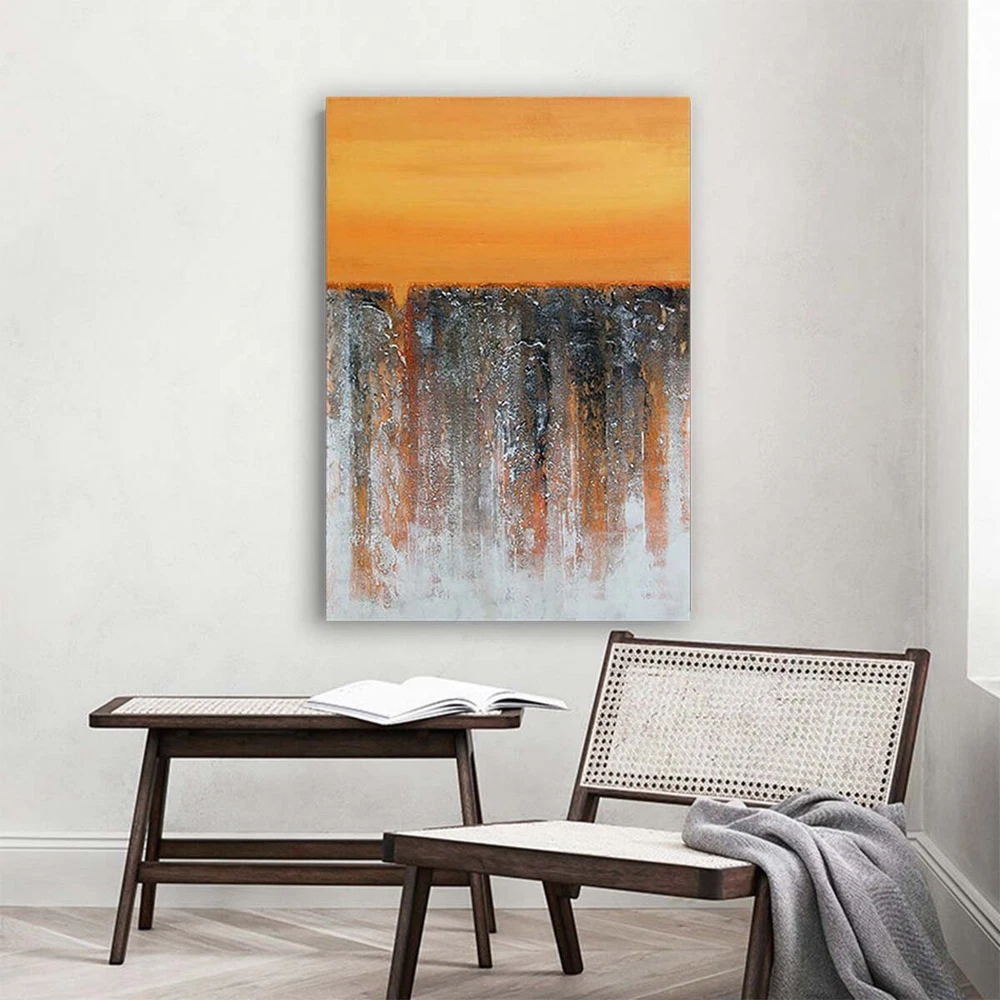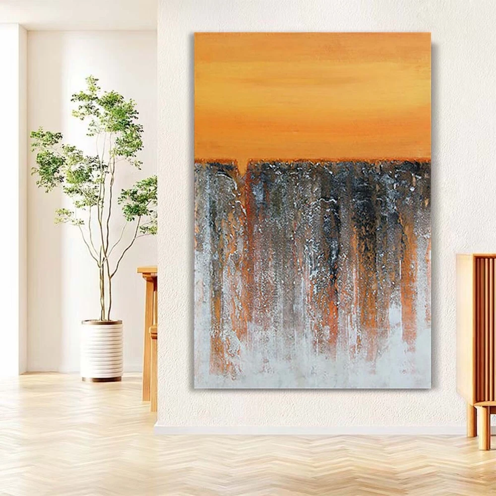 Orange Art Deco Mural Handmade Canvas Oil Painting Abstract Texture Wall