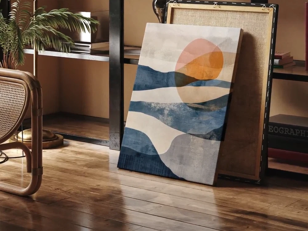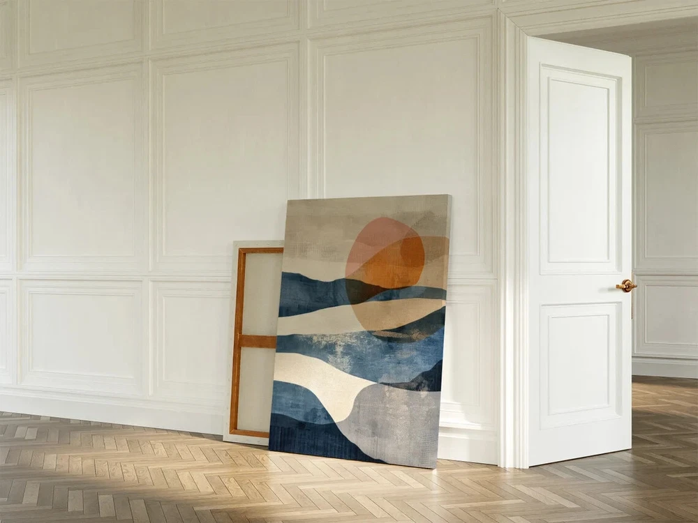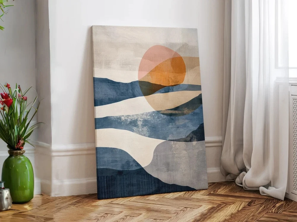 Orange Blue Abstract Painting, Scenery Unframed Canvas Print Australian Wall Art
