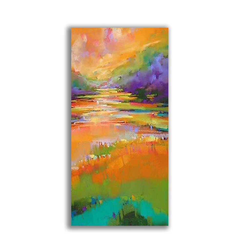 Orange Hand painted Oil Painting Blue Modern Abstract Living Room Bedroom Porch