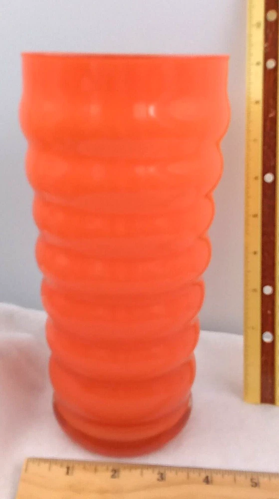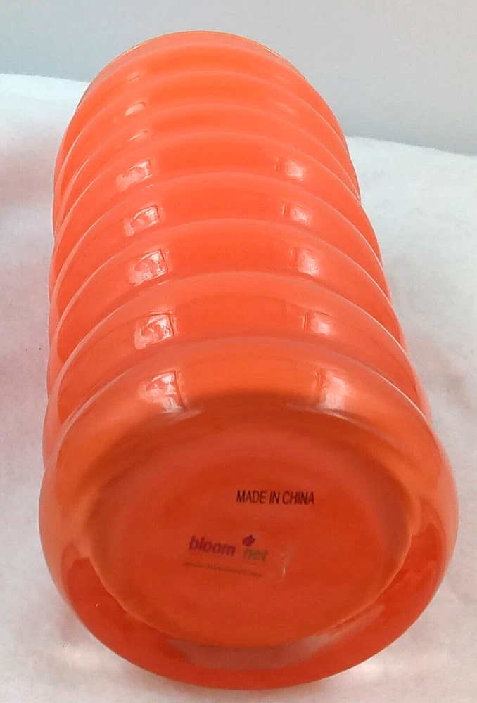 UPC: Does not apply Type: Flower Vase Department: Adults Customized: No Vintage: Yes gtin13: Does not apply Material: Glass Style: Art Deco Features: Decorative Item Height: 9 in Brand: BloomNet Seller Notes: “Beautiful Orange Color! Very Pretty! Pre-owned! Vintage!” Personalize: No Finish: Glossy Pattern: Floral Shape: Round Color: Orange Room: Any Room Theme: Flowers Mounting: Free Standing Additional Parts Required: No Country/Region of Manufacture: China Care Instructions: Easy Care