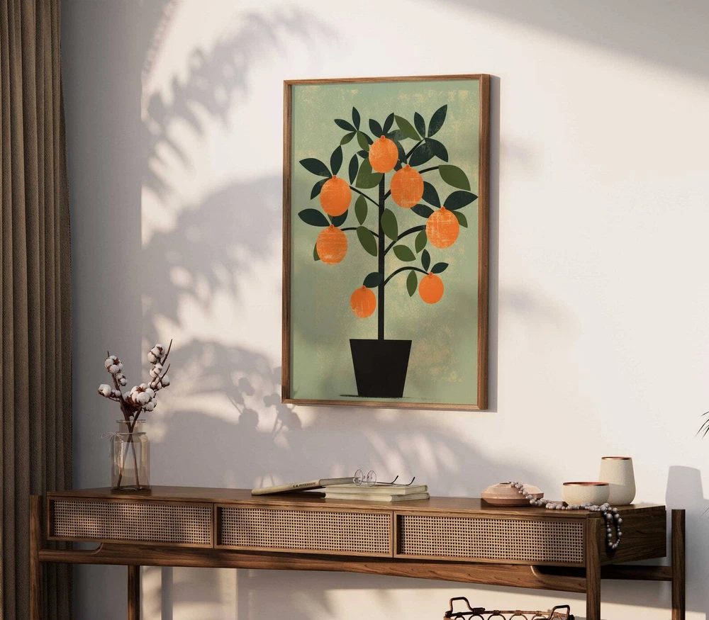 Orange Tree Wall Art Fruit Kitchen Decor Minimalist Botanical Art Vintage Fruit Tree Artwork Fruit Tree Art Abstract Material: Premium luster photo paper Print type: Inkjet printing One side printed + The finish provides the highest possible resolution and color saturation + Lasts up to 200 years in color and 400 years in black-and-white + Printed on high-quality resin-coated photo base paper medium + Posters can be hung with double-sided tape, tacks, or framed + Hand washing with a gentle cry cloth is recommended for extended durability I will hand select the best choice of paper for your chosen design to ensure top quality results for a beautiful, bright and luxurious print. All prints are sealed in cellophane slips for protection during transportation, and are shipped in a protective cardboard envelope.