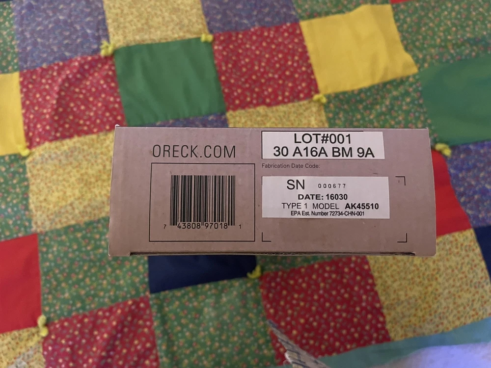 You are bidding on a New Oreck replacement filter.Model# AK45510 W/ SN 000677 --If you have any question message me. I will provide tracking#. Thanks