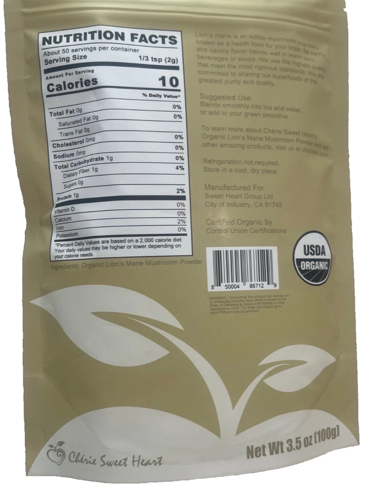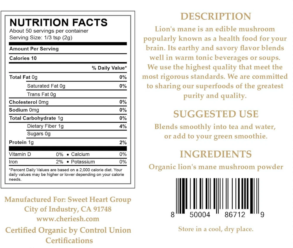 This organic lion's mane powder is a game-changer! Super fine texture, blends smoothly into coffee or smoothies. Noticeable focus boost within days—great for productivity. Love that it's certified organic and sustainably sourced. Perfect for nootropics beginners or mushroom enthusiasts. Highly recommend!
