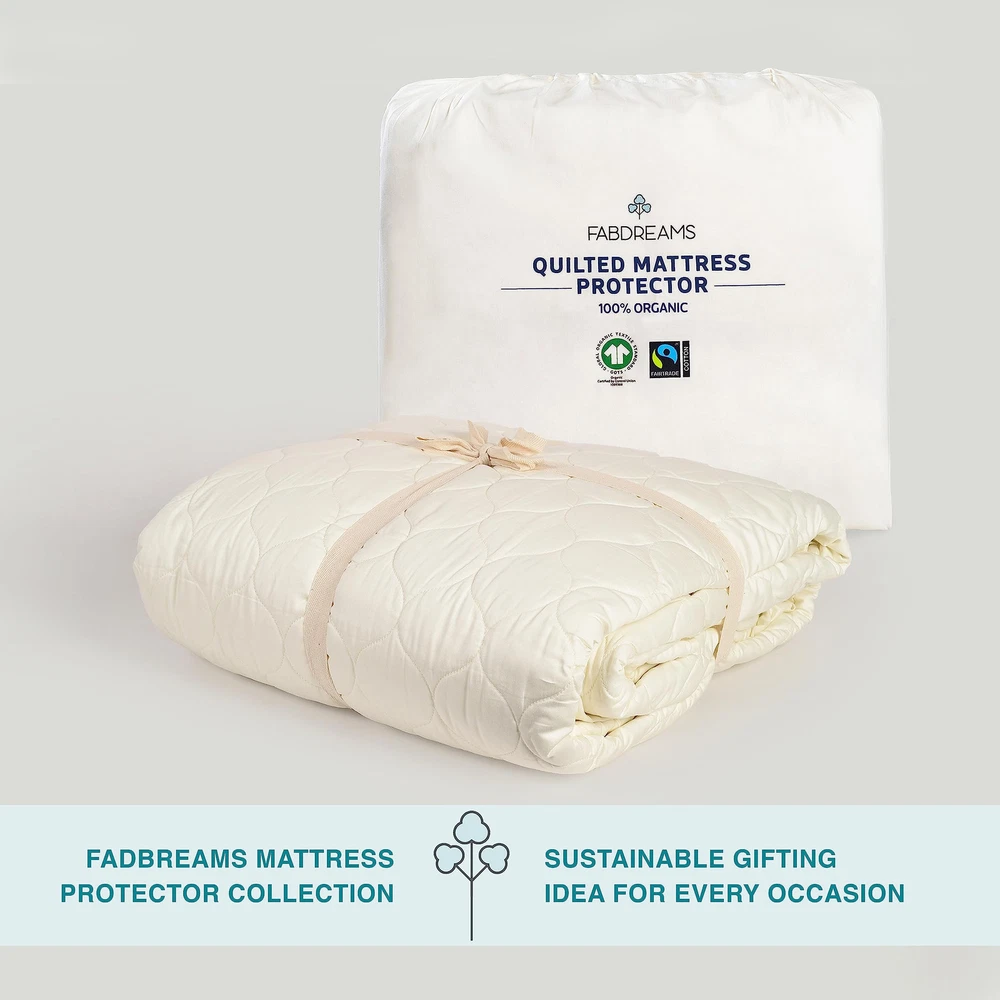 GOTS CERTIFIED ORGANIC COTTON: Feel the cushioned embrace of Quilted Mattress Protector; made with 300 TC Organic Cotton and soft cushioned Organic Cotton Wadding. Mattress Pad Protector is the upgrade you need for your mattress. Our cotton is GOTS Certified, Organic, Fair Trade and ethically manufactured in India. Mattress pad is free of all chemical finishes and flame retardants. HIGH DENSITY CUSHIONING & DEEP POCKETS: Quilted Mattress Protector in Twin size measures 39" x 77” + 17” and is a match made in heaven for your mattress. Quilted Mattress Pad fits up to 17” deep pocket mattress , provides incremental cushioning and natural softness for additional comfort. Quilted Mattress Protector also doubles down as an additional layer of protection for your mattress. ANTI SLIP ELASTIC & TEMPERATURE REGULATING: Made from 100% GOTS Certified Organic Cotton, Mattress Pad is 100% breathable & helps to perfectly regulate your body temperature unlike the synthetic mattress pads available at cheaper price. Organic Mattress Pads offer you freedom from odorous smells of synthetic fabrics & is suitable for every skin type. Our Quilted Mattress Protector has a silicone strip around elastic fitted sheet for non-slip & easy fitting on thick mattresses BUNDLE UP WITH OUR WATPROOF MATTRESS PROTECTOR: In addition to our Organic Quilted Mattress Protector, also offers a 100% Organic Waterproof Mattress Protector. For best results we recommend layering your plush mattress first with a Waterproof Mattress Protector & then covering it with Quilted Mattress Pad for ultimate comfort and protection. Mattress Accessories come in Twin, Full, Queen and King Sizes. SUSTAINABLE GIFTING WITH RECYCLABLE PACKAGING: Quilted Mattress Protector is an environment friendly gifting choice for all your special occasions – Thanksgiving, Christmas, Birthdays, Weddings, and Anniversaries. In our mission to cut out plastic, this product comes in a reusable, organic cloth bag. Quilted Mattress is GOTS Certified , OEKO- TEX Certified & made from Fair Trade Organic Cotton.