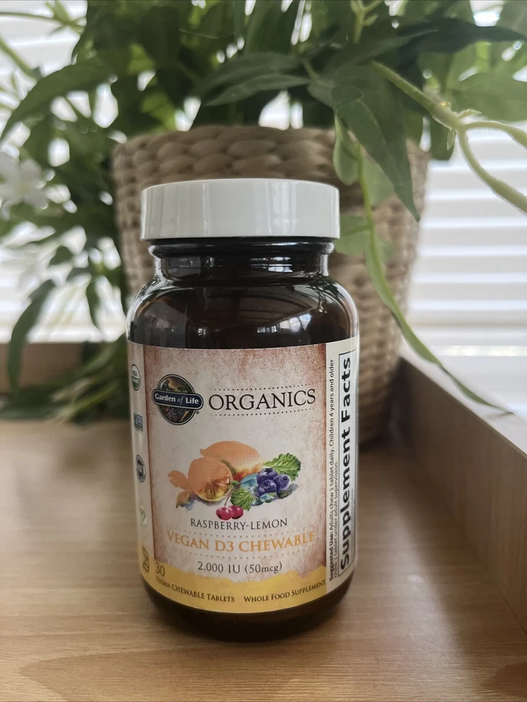 Organics, Vegan D3, Raspberry-Lemon, 50 mcg (2,000 IU), 30 Vegan Chewable 10/26.