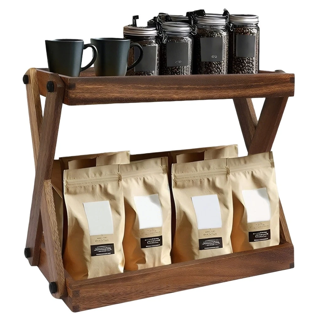 Organizador De Estantes De Madera Para Encimera, Estante De Madera De 2 Niveles