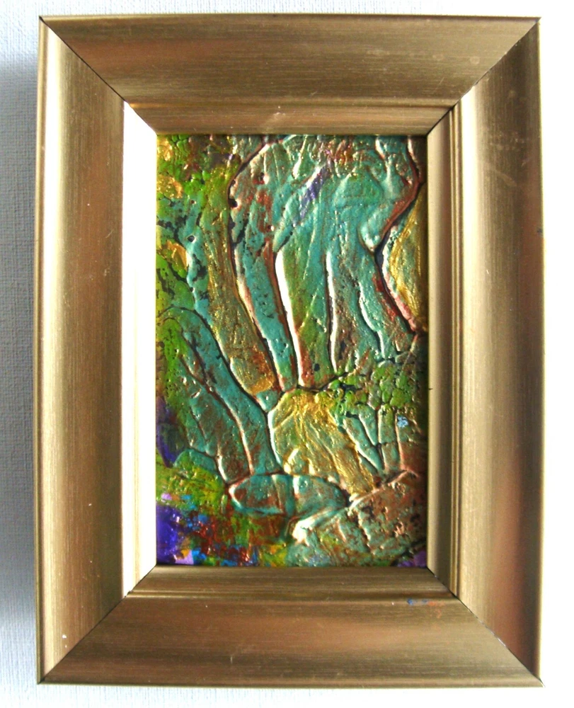 Original ACEO shimmery acrylic abstract painting. Fantasy fairy forest. Textured! Miniature collectible art. These unique little paintings measure 2.5" x 3.5" Each painting is an original. Created with quality acrylic artists paints on Arches 140 lb. watercolor paper. Not a print. Signed, dated with a protective finish. Every ACEO painting will arrive in a clear protective acid free sleeve. Mailed in a regular stamped envelope Always prompt shipping and packed well. Gallery photos show other paintings currently listed. Combined shipping to USA....up to 4 paintings in a regular stamped envelope. $1.00 International shipping.............up to 3 paintings in a regualr stamped envelope. $1.65