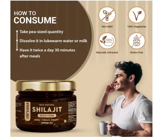 Product Description : Shilajit Resin from the house of Nirvasa is comprised of several health benefits. Since the ancient times, Shilajit has been used in Ayurveda to cure a plethora of diseases and problems. The Shilajit Resin from Nirvasa is a non-toxic, immune strengthening, and energy-boosting infusion of pure Shilajit extracts, clubbed with 70%+ Fulvic acid suitable for both men and women. Regular and correct consumption of this magical gift of mountains is beneficial in boosting energy and promoting the workout performance. Efficacious immunity accelerator Himalayan Shilajit resin for men and women It may slows down aging, boosts energy, relieves stress and improves brain functions More than 70% Fulvic acid and 84+ minerals and trace elements in pure shilajit exudate Contains anti-oxidants to increase strength and preserve healthy glowing skin Why Nirvasa Shilajit Resin is known as Immunity- Energy Seeder & Performance Facilitator? Nirvasa Pure Shilajit Resin with >70% fulvic acid is a non-toxic, may act as an immunity enhancing, and energy-boosting supplement. Being a god’s gift from the ancient times, the consistent and correct consumption of our Shilajit resin for men and women helps upgrade immune system functions and increase energy levels, promoting healthy body performance. Along with over 84+ minerals (like silica, magnesium, sodium, etc.), fulvic acid (a rich source of Oxygen (O2)), this purest and natural Shilajit resin helps in improving healthy digestion and neuro functions. B oosts Immunity Perimeters defensive mechanism of Nirvasa’s Shilajit resin may safeguard cellular immunity and infuses energy enhancing vitals. Nirvasa’s Pure Shilajit resin in India comes with a triple health blend of Himalayan Pure Shilajit exudate, more than 70% of fulvic acid and 84+ trace minerals, which is one of the best remedies to boost immunity naturally. Virus Walling With excellent virus resistivity, this Pure Shilajit helps possess respiratory tract cleansing ability to keep you healthy and fit. It may enhance the brain functionality while protecting cells against virus breach. Derma & Digestive Savvy While being prompt in skin heal-seal and improving skin health, Shilajit resin for men and women from Nirvasa supports digestion and helps you look young. N ot only for Men, But for Women too Nirvasa is known for producing Pure Shilajit which is formulated not only for men, but for women too. Containing more than 84 minerals, our Shilajit resin helps enhance strength and energy. It may support anti-ageing, stimulating metabolism, and reducing stress. P erfect Catalyst for Enhancing Performance Fulvic acid present in Nirvasa’s pure shilajit resin helps increase strength, relieve stress of the body and boost overall performance, in bed as well as in gym. By boosting energy levels, it helps to keep you active throughout the day. Feel the Power with Nirvasa Pure Shilajit Pure Shilajit Resin Exudate for Men & Women It helps protect against cellular damage and safeguard healthy cells, thereby, boosting immunity and energy. Nirvasa’s Shilajit resin improves circulatory function, improves digestion, and prevents premature hair greying. Apart from that, it also promotes bone and skin health. It also helps boost immune health, and treat respiratory congestion. E ffective >70% Fulvic Acid Naturally occurring, fulvic acid is an organic substance known for its ability to elevate the bioavailability of minerals and nutrients in the body. It’s due to its low molecular weight allowing it to pass through the body’s membranes without any hassle and go directly into the cells, taking vital minerals and vitamins with it. In addition to its powerful ability to improve the absorption rate of nutrients and minerals, fulvic acid present in pure shilajit resin is also known for supports protein synthesis, metabolism, neutralizes free radicals due to its high antioxidant levels, and reduces pain and inflammation. 8 4+ Trace Minerals Because pure shilajit exudate is formed right from the right Himalayan Mountain rocks which is present in Nirvasa’s shilajit resin, its mineral content is extremely high. It may contain as much as 84+ minerals and trace elements. The myriad of health benefits of taking trace minerals to increase the body's nutrient absorption is why Shilajit is such a substance of importance in Ayurvedic medicine and sought after supplement around the world. What Makes Nirvasa Pure Shilajit Resin Safe & Effective? Energy Optimizing Resin Pure Shilajit exhibits energy management features. Mineral-rich Shilajit Resin holds energy-boosting attributes that engage its bio-essential to revive and surplus energy. Shilajit might take participate in cell functions in the body, and may reduce tiredness at the source of the problem and upsurge the energy levels naturally. Digestion Facilitator Facilitates nutrition absorption and prevents indigestion. Shilajit resin for men and women from Nirvasa activates digestive enzymes for efficient digestion and maintains your stomach health. Also, it helps in healing digestive issues that include constipation, indigestion, and other stomach conditions that may cause due to cause pain. Maintains Skin Integrity Nirvasa’s pure shilajit resin helps maintain healthy and glowing skin. Fulvic acid helps delay the early signs of aging, exfoliates the skin and helps in sloughing off the outer layer of the skin. Due to the presence of Fulvic acid, Shilajit is responsible for accelerating and regulating signs of ageing. Immune Modulator Natural immunity stimulator, Nirvasa’s Shilajit Resin inherits cell nourishing characteristics that boost the function of the immune system. With improved immunity, you stay safe and healthy. Along with it, it also helps to reduce stress and anxiety and boost the immune system Delivery : Product will be shipped within 3 business days after receiving clear payment. Shipping Service : India Post International Estimated Delivery Time 