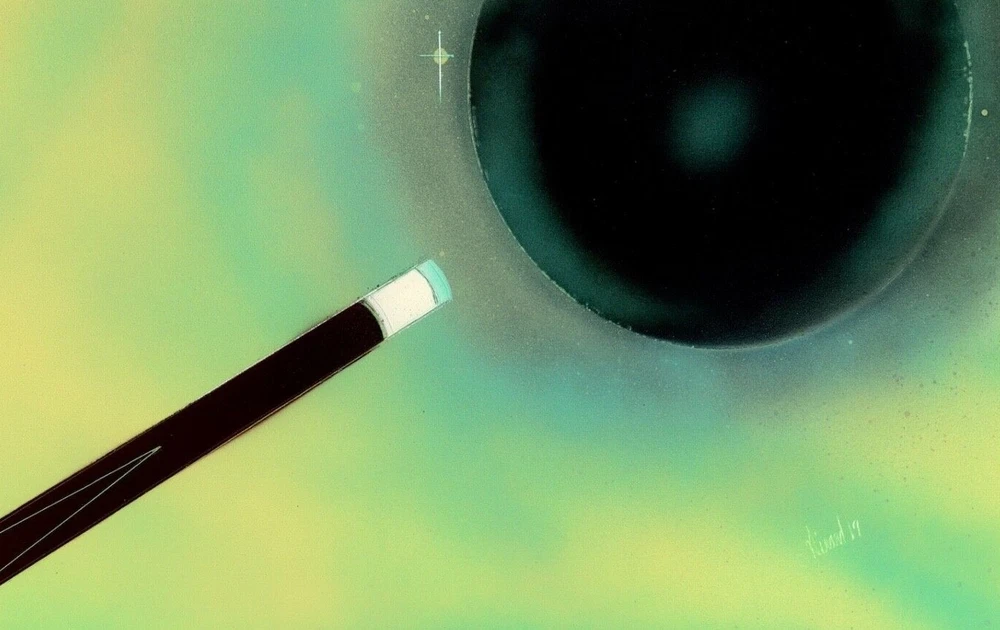 Original Art Surreal Space Pool Playing Scene with Cue and Ball by Jason Girard.