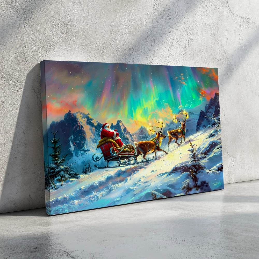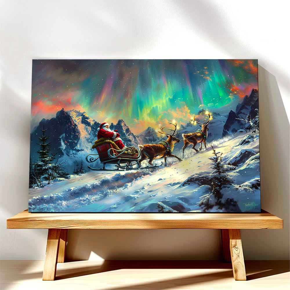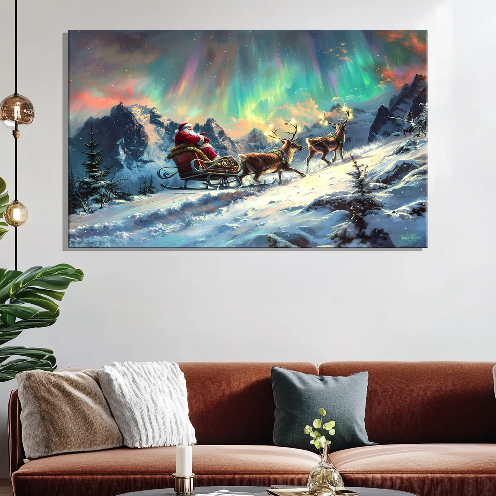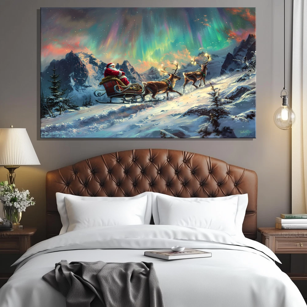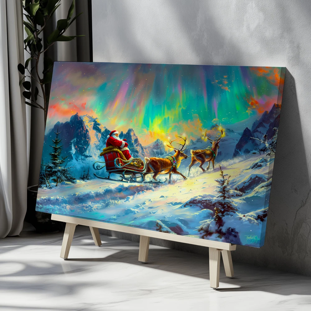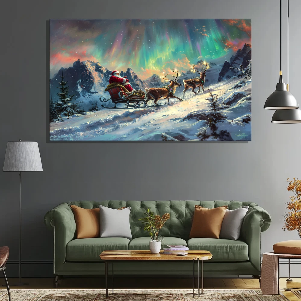 Product Description ❄️ Santa's Sleigh Under the Northern Lights - A Magical Winter Scene ❄️ Original Artwork- Santa Sleigh in Aurora Winter Scene - Framed Canvas Print Bring the enchantment of the holidays to your home with this original artwork depicting Santa Claus on his sleigh gliding through a breathtaking winter wonderland beneath the mesmerizing Aurora Borealis . 🎅✨ This stunning canvas print captures the spirit of Christmas with rich colors, vivid details, and an immersive festive atmosphere. 🌟 Key Features ✅ Original Artwork : A unique, handcrafted design created to elevate your decor. 🖼️ Premium Canvas Material : Expertly printed on high-quality canvas for vibrant, lasting colors. 🏡 Versatile Sizes for Any Space : Available in 5 size options : 8x12 inches (Horizontal) 12x16 inches (Horizontal) 12x18 inches (Horizontal) 16x24 inches (Horizontal) 24x36 inches (Horizontal) Perfect for cozy nooks, living rooms, bedrooms, or feature walls! 🎨 Elegant Framed Design : Arrives ready to hang with a sleek frame that adds sophistication to any room. 🚚 Global Shipping : We deliver worldwide 🌍 so this magical piece of art can be yours no matter where you live. 🎁 Ideal Gift : The perfect holiday or Christmas gift for loved ones who cherish festive art and stunning winter landscapes. 🏠 Perfect For Living Room 🛋️ Bedroom 🛏️ Office 💼 Hallway 🖼️ Kids' Room 🧸 🎄 Transform your space with this festive masterpiece and immerse yourself in the magic of the season. From the glowing Aurora Borealis to Santa's timeless sleigh ride, this artwork brings warmth, joy, and holiday spirit to your home. 🛒 Order now and celebrate the season with art that tells a story! 🎨
