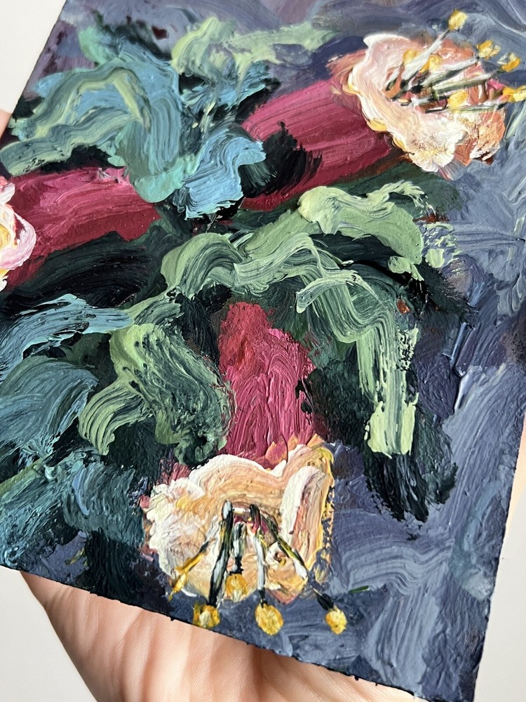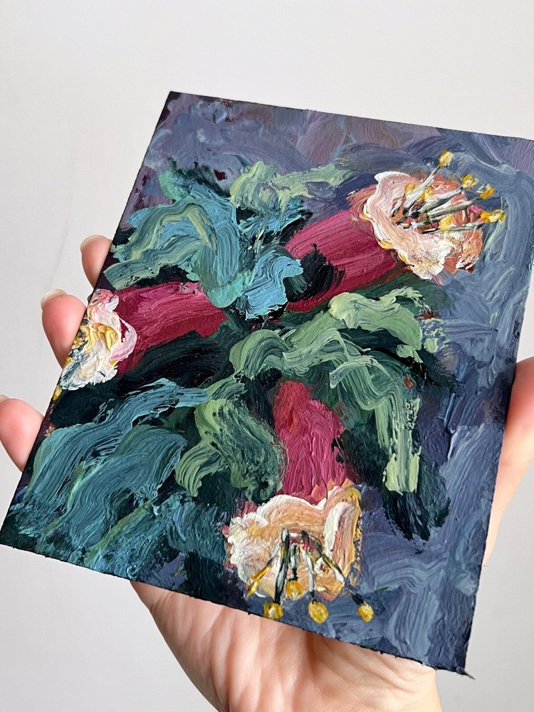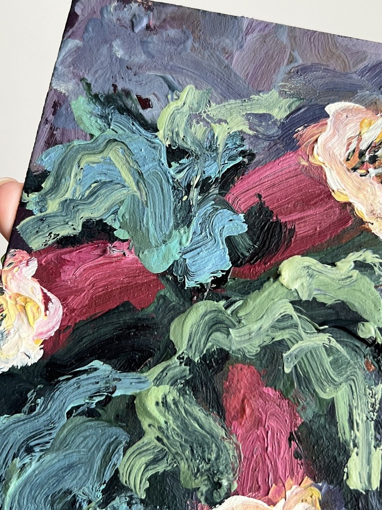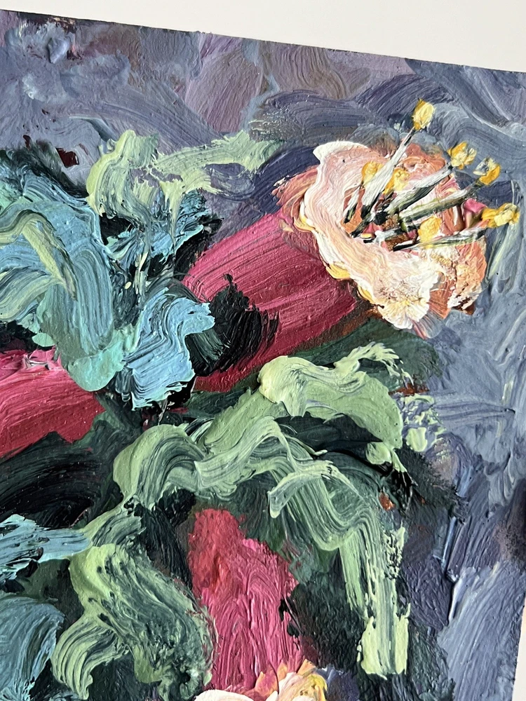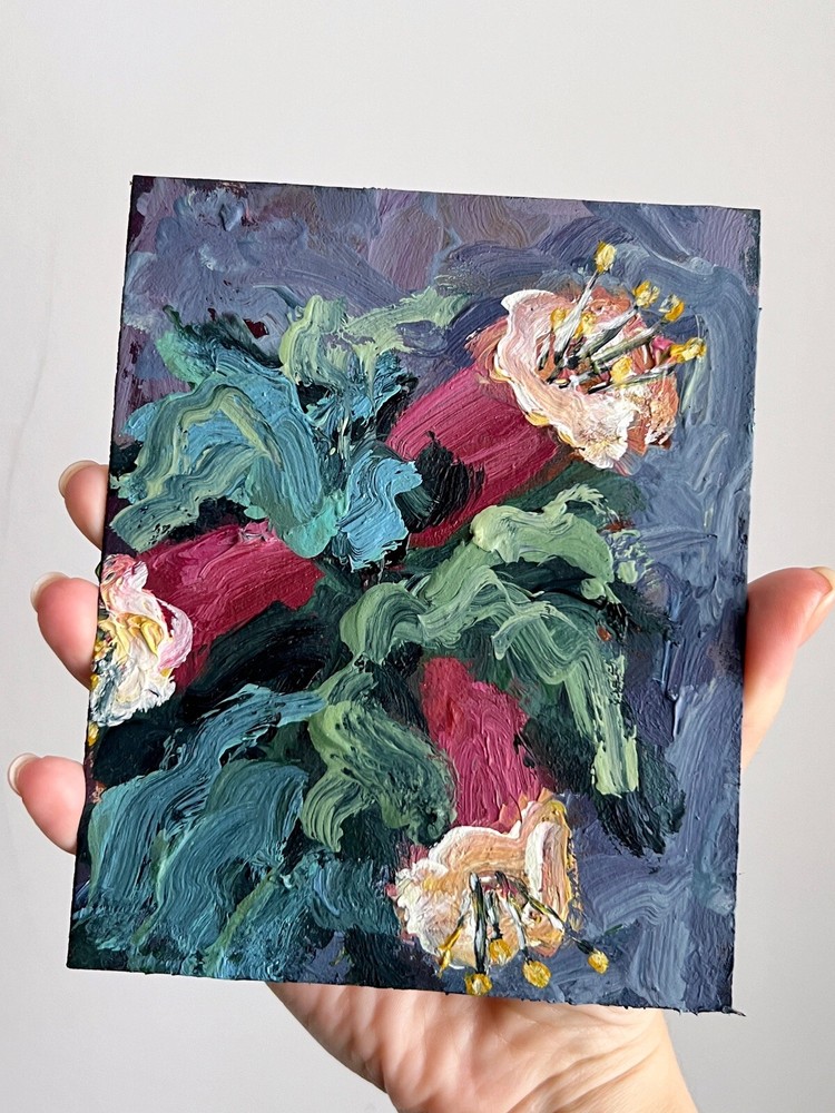 ๐ฟ Original floral art. Loose brush flowers oil painting. Impressionism original signed miniature artwork. Small floral oil painting. ๐ท Original author's oil painting on cardboard . Unframed. Need a decorative frame. ๐ฟ Size: 12x14.5 cm / ~ about 5x6 inches ๐ท Signed from the back by Kateryna Oliynyk . ๐ฟ Materials: professional oil paints, cardboard ,. Unframed . Need a decorative frame. ๐ท I use exclusively professional and safe high quality paints for artists in my artworks. ๐ฟ Each parcel is securely and beautifully packed, so you don't have to worry about its safety. ๐ท Please note that paintings are sent without frames. ๐ฟ Please note that oil paints take a long time to dry, so for new paintings, the delivery period may increase by 2-3 weeks.