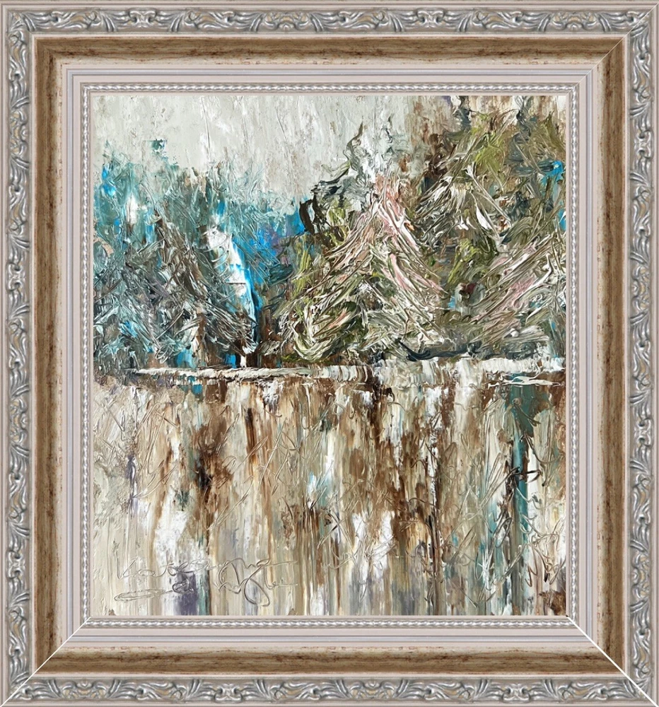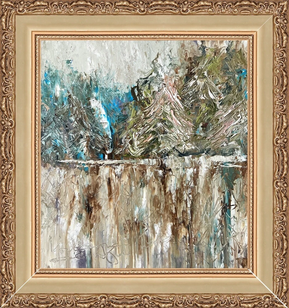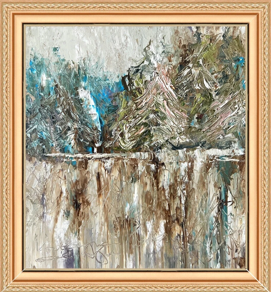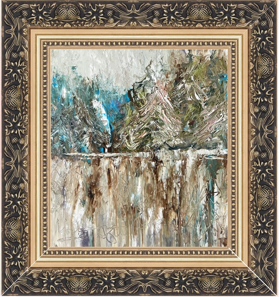 🌿 Framed Abstract Landscape Original Oil Painting. Alaska winter landscape lake forest signed artwork. 💯 hand painted original OOAK wooden framed wall art decor. Rustic farmhouse unique decoration. ⭐️ This is not a copy or a custom work. You will receive exactly the original painting you see in the photo. 🌷 Original author's oil painting with high quality thick and durable frame. ⭐️ Please specify your frame design during checkout or send me a message. ⭐️ 🌿 Size: 20x21.5 cm (8x8.5 inches ) - without frame; ~ about 28x30cm (~ 11.5x12 inches) - with frame. 🌷 Signed from the back by Kateryna Oliynyk. 🌿 Materials: professional oil paints, cardboard. Wooden Frame. ⭐️ Each frame is made individually to order, specifically for your painting. These frames are durable, thick, heavy and of the highest quality. They are high quality and look very presentable and expensive. You can hang the picture on the wall or put it on a shelf - there is a sturdy stand on the back ⭐️ 🌿 I use exclusively professional and safe high quality paints for artists in my artworks. 🌷 Each parcel is securely and beautifully packed, so you don't have to worry about its safety. 🌿 Please note that oil paints take a long time to dry, so for new paintings, the delivery period may increase by 2-3 weeks.