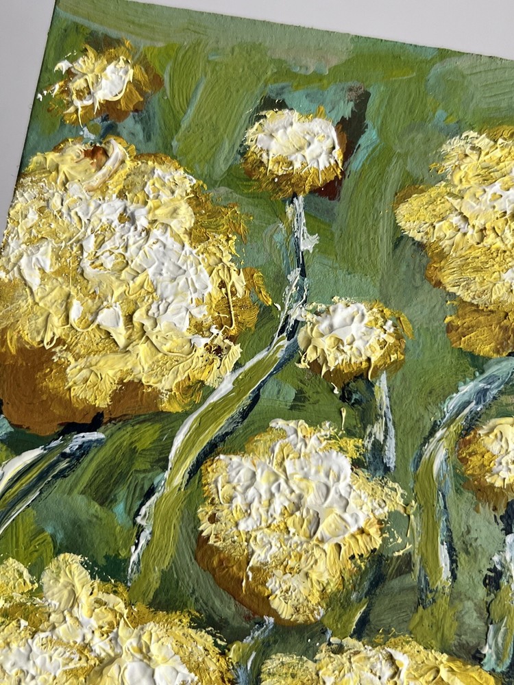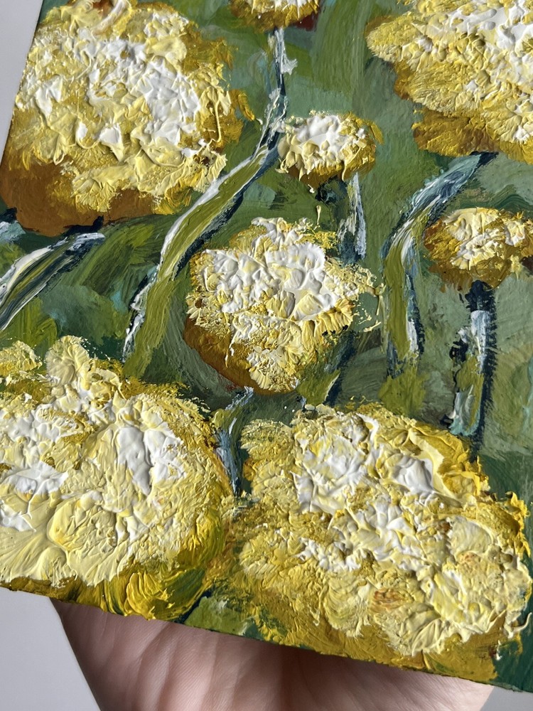 Handmade: Yes Date of Creation: 2000-Now Personalize: No Year of Production: 2024 Signed By: Artist Size: Small Title: Original Floral Oil Painting Item Length: 5 in Listed By: Artist Width (Inches): 5 Style: Impressionism, Miniature, Impressionist Features: Miniature, One of a Kind (OOAK) Region of Origin: Ukraine Framing: Unframed Material: Cardboard, Oil Time Period Produced: 2020-Now Country/Region of Manufacture: Ukraine Original/Licensed Reproduction: Original Subject: Botanical, Flowers, Landscape, Plants, Floral, Nature, Wildflowers, Garden, Field Period: Ultra Contemporary (2020 - Now) Unit of Sale: Single Piece Artist: Kateryna Oliynyk Theme: Art, Floral, Nature, Flowers, Plant, Botanical, Garden Item Height: 6 in Production Technique: Oil Painting Type: Painting Signed: Yes Height (Inches): 6