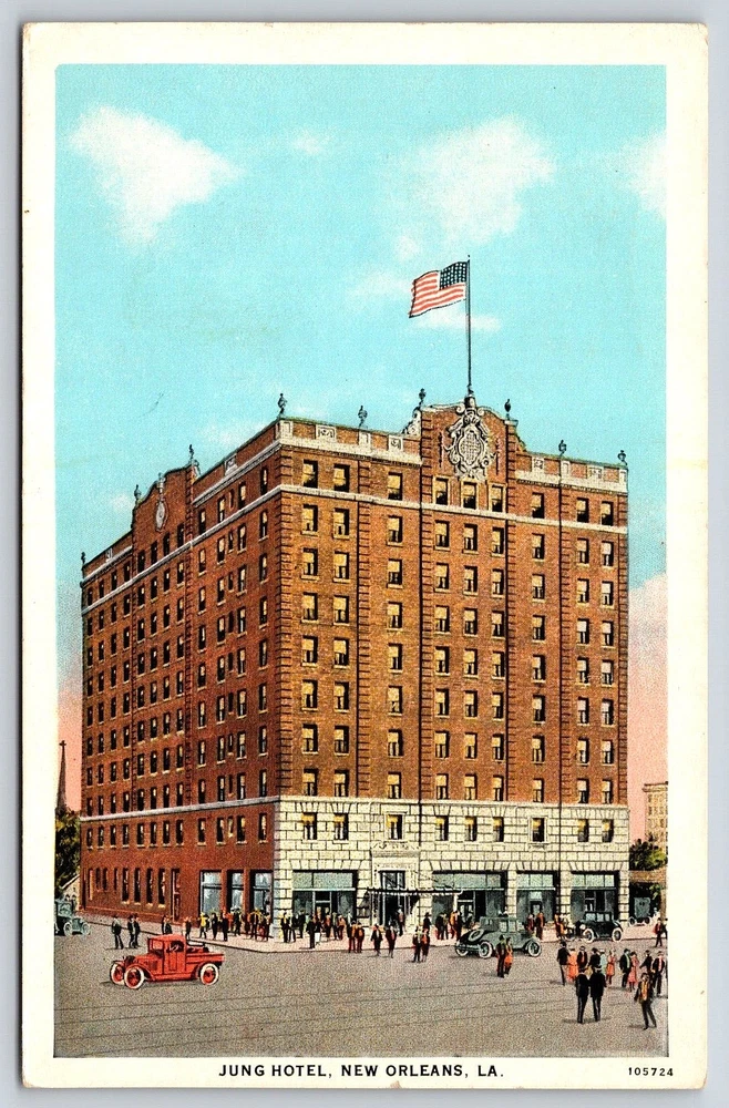 Original Old Vintage Antique Postcard Jung Hotel Cars New Orleans Louisiana USA